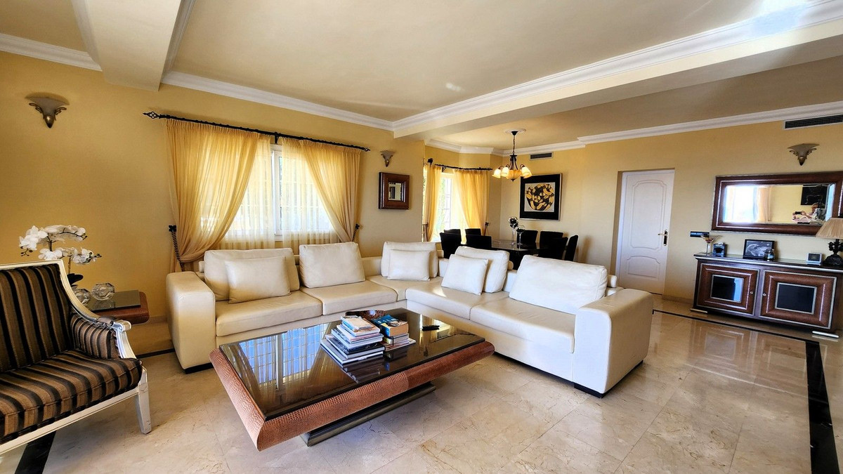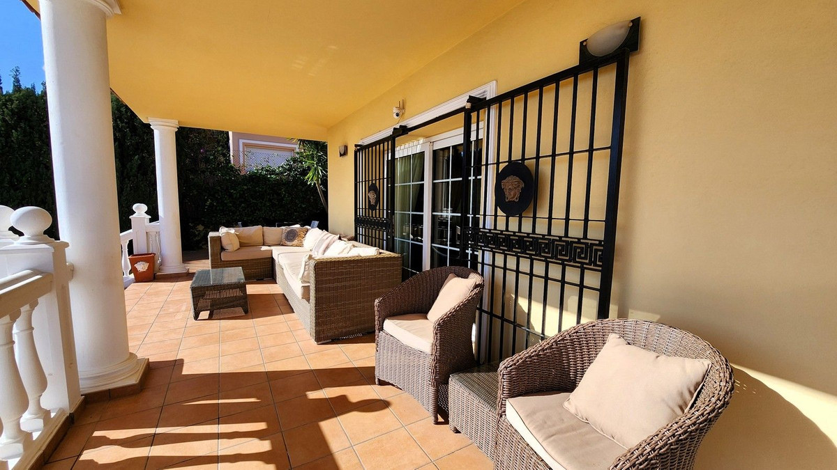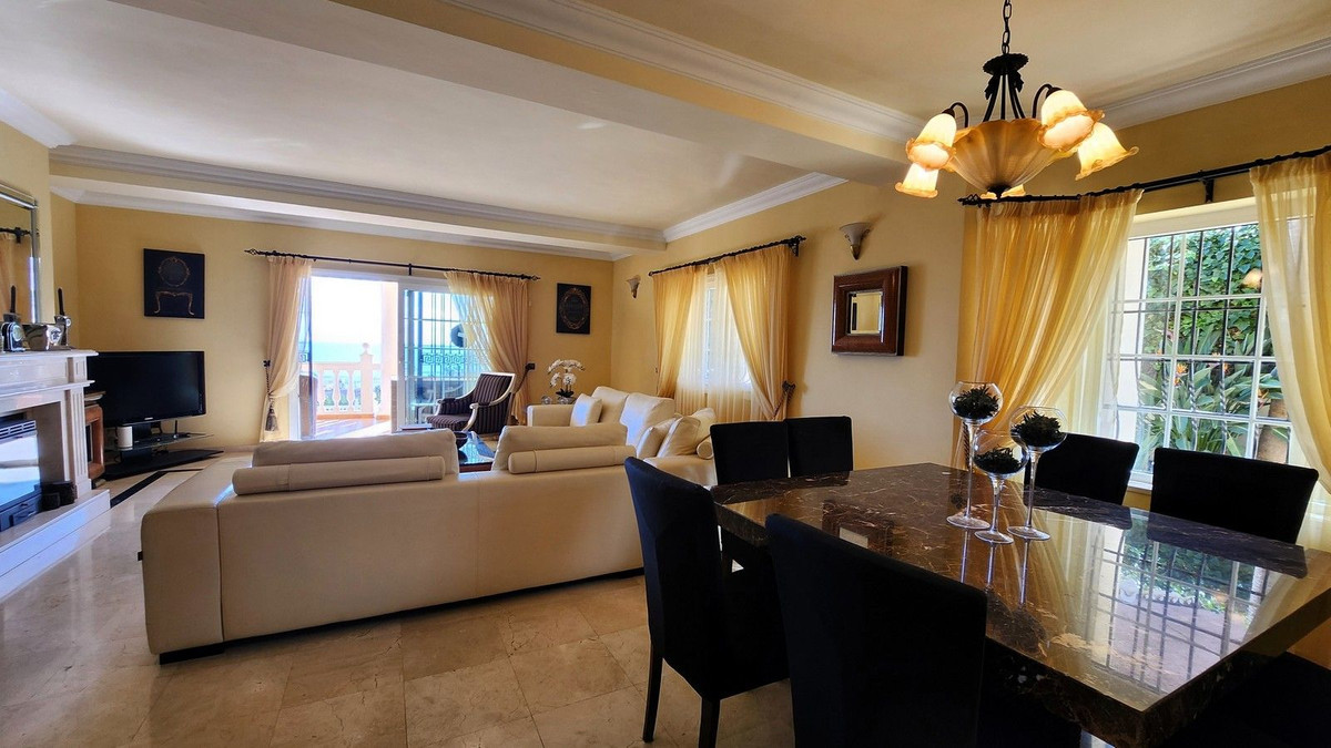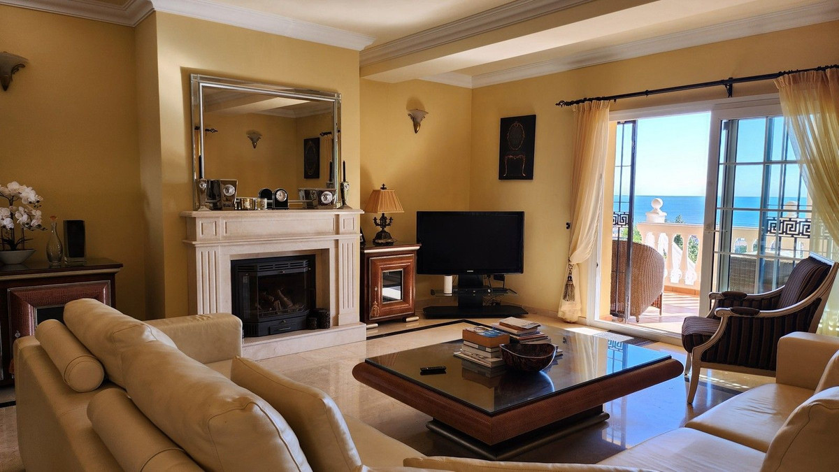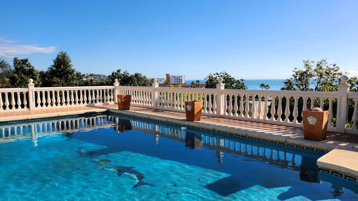 Experience panoramic sea views that will take your breath away! This stunning villa is just a short stroll to all the vibrant amenities and the pristine beach, offering some of the most breathtaking coastal vistas you've ever seen. Nestled in the coveted Jardin Botanico, just minutes from the heart of La Cala de Mijas, this property is a true gem. Set on a generous double plot, it provides ample space to truly live your dream. With five exquisite bedrooms, each boasting its own en suite, and a stylish guest toilet, comfort and elegance are at the forefront. The vast basement features a massive double bedroom, a lively games room, and a convenient shower room—a perfect retreat for family and friends. Up on the first floor, you'll find another charming bedroom, a stunning lounge graced by a colossal fireplace, and those extraordinary sea views that will forever inspire you. The sleek kitchen with access to the backyard makes everyday living a pleasure. Ascend the grand staircase to discover three additional en suite bedrooms, including the master retreat with its own private terrace—an oasis of peace and luxury. If you’re seeking a remarkable investment or a place to call home that stirs your soul, this property is calling out to you. Don’t miss the chance to make this enchanting haven yours!
