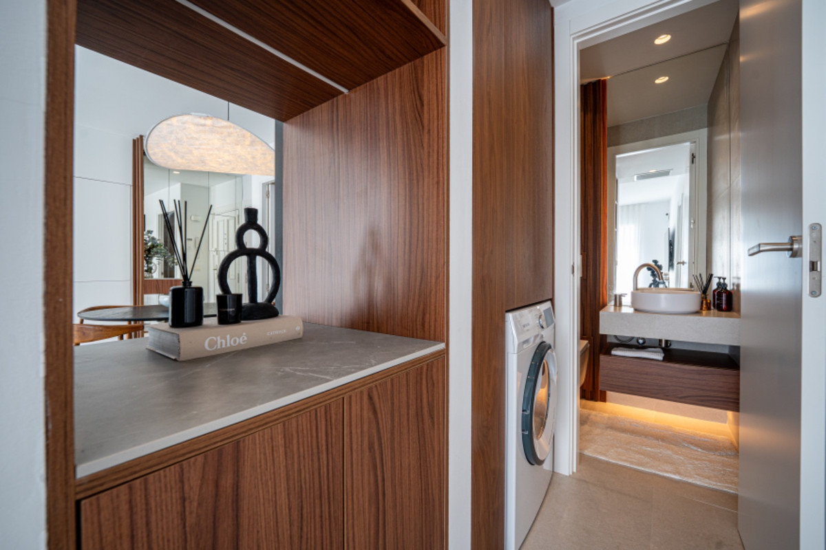 Apartment Oslo is a top-floor residence in La Quinta that offers exceptional views and refined living. The home features two bedrooms and three bathrooms across 110 square meters of space. Every area has been designed for comfort and ease, with an open layout that brings light into every corner. The large south- and east-facing terrace provides a seamless connection between indoor and outdoor living, perfect for relaxing or dining under the stars.