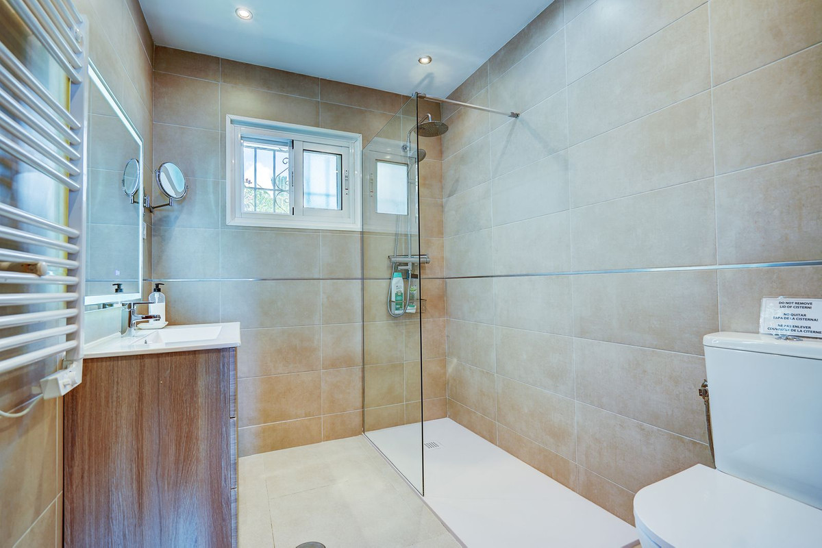 On the lower level, a fifth bedroom with ensuite bathroom, a cosy second lounge, and an additional kitchen create the perfect setup for a self-contained guest apartment. There’s also an office, a fourth bathroom, plenty of storage space, and room to add more bedrooms if desired. Outdoor features include spacious terraces, a lawned garden, and a large private swimming pool—perfect for enjoying the Costa del Sol sunshine. The home also benefits from air conditioning, double glazing, fibre-optic internet, a double garage, and is offered part furnished.