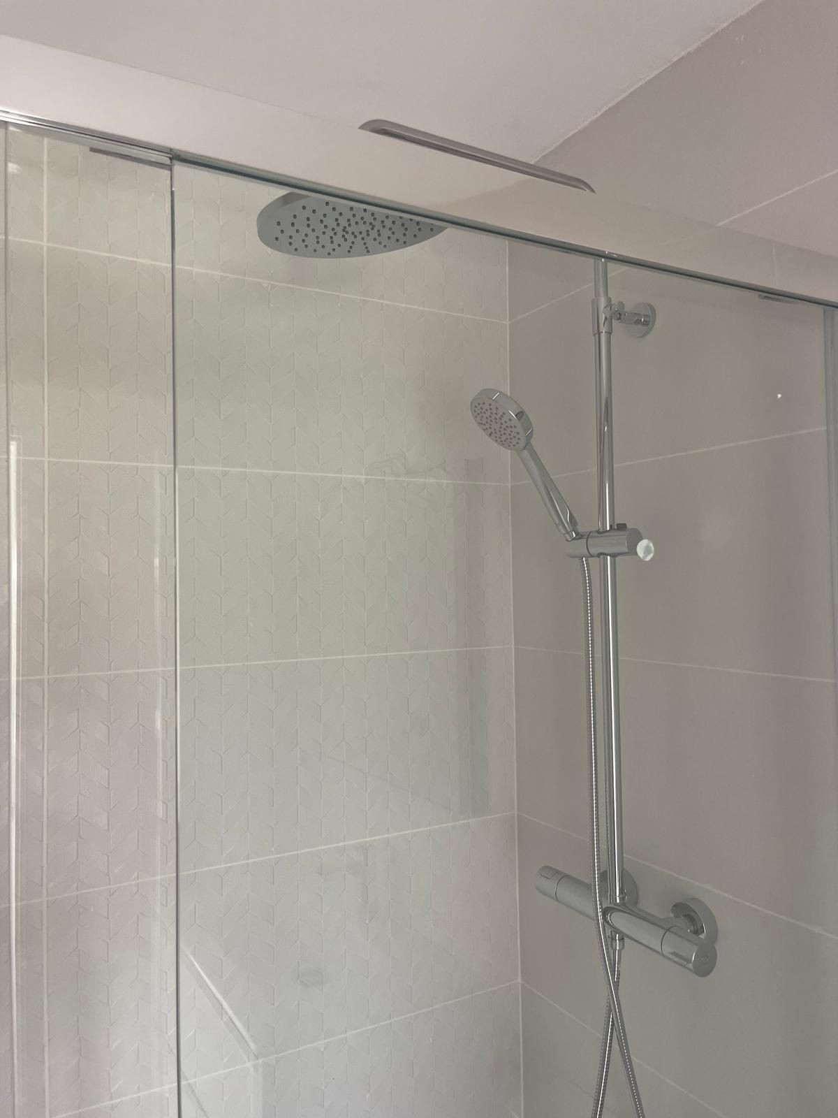 Located on the ground floor, the property offers two average sized bedrooms with fitted wardrobes, including one en-suite bathroom, plus an additional full bathroom. The open-plan kitchen flows seamlessly into the bright living area, which opens onto a private terrace and a small fenced garden with low-maintenance astro turf—ideal for relaxing or entertaining.