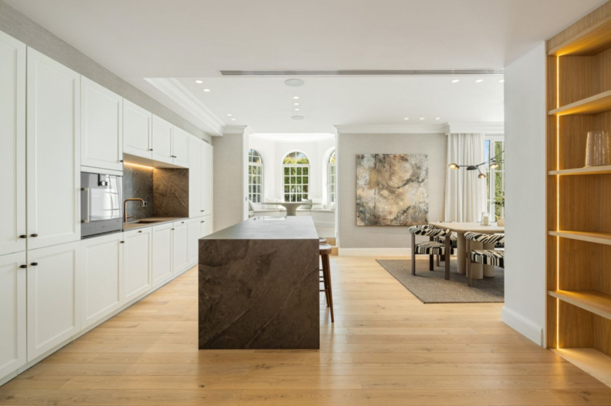 Upon arrival, the villa captivates with its immaculate white façade, lush landscaped gardens, and a stately driveway that sets the tone for what lies within. The interiors impress with spacious open-plan living areas, high ceilings, and an abundance of natural light, all enhanced by a refined neutral palette and elegant finishes. The home features multiple living lounges, a bespoke designer kitchen, a state-of-the-art home cinema, a climate-controlled wine bodega, and a fully equipped gym and spa—offering the ultimate in luxury and lifestyle.