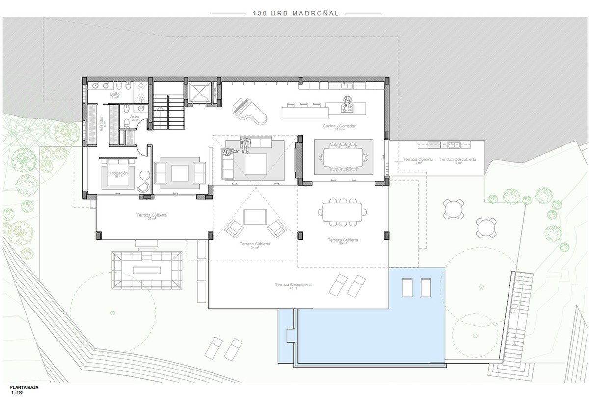 The plot is sold with a fully approved architectural project and building license for a contemporary villa with: