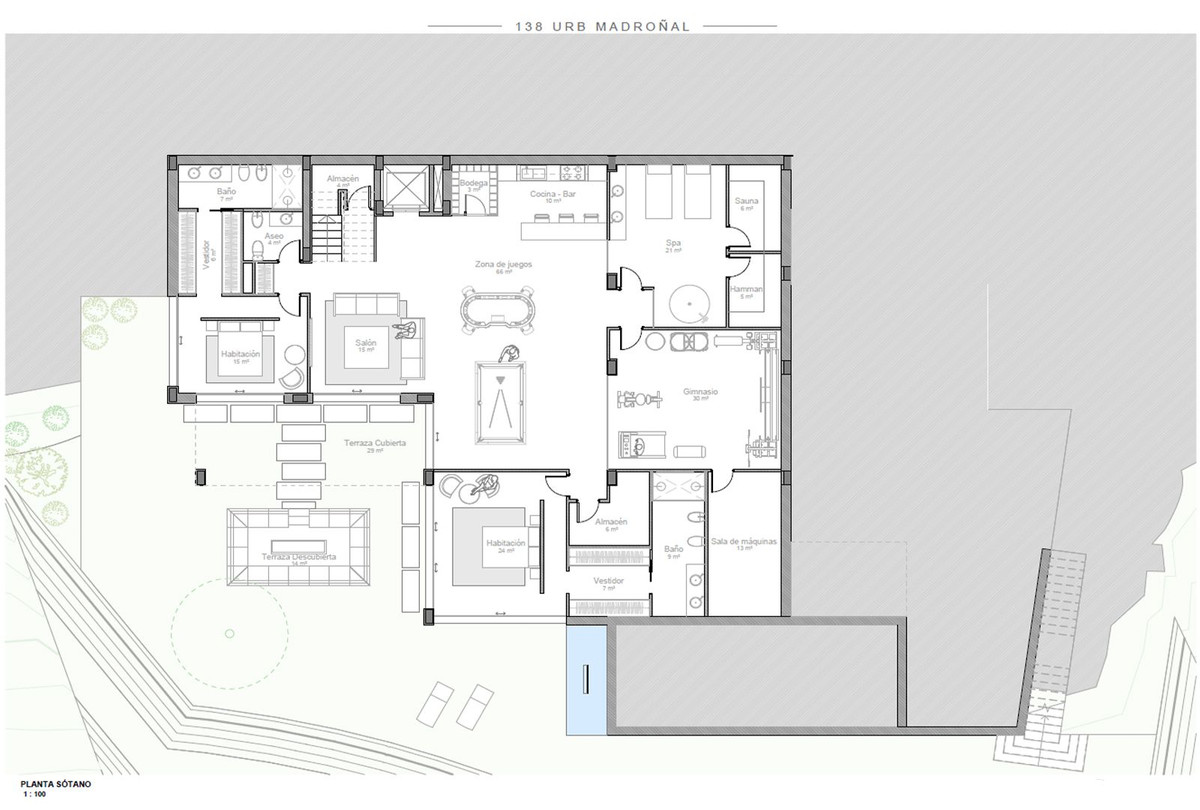 • Infinity swimming pool of 53 m²,