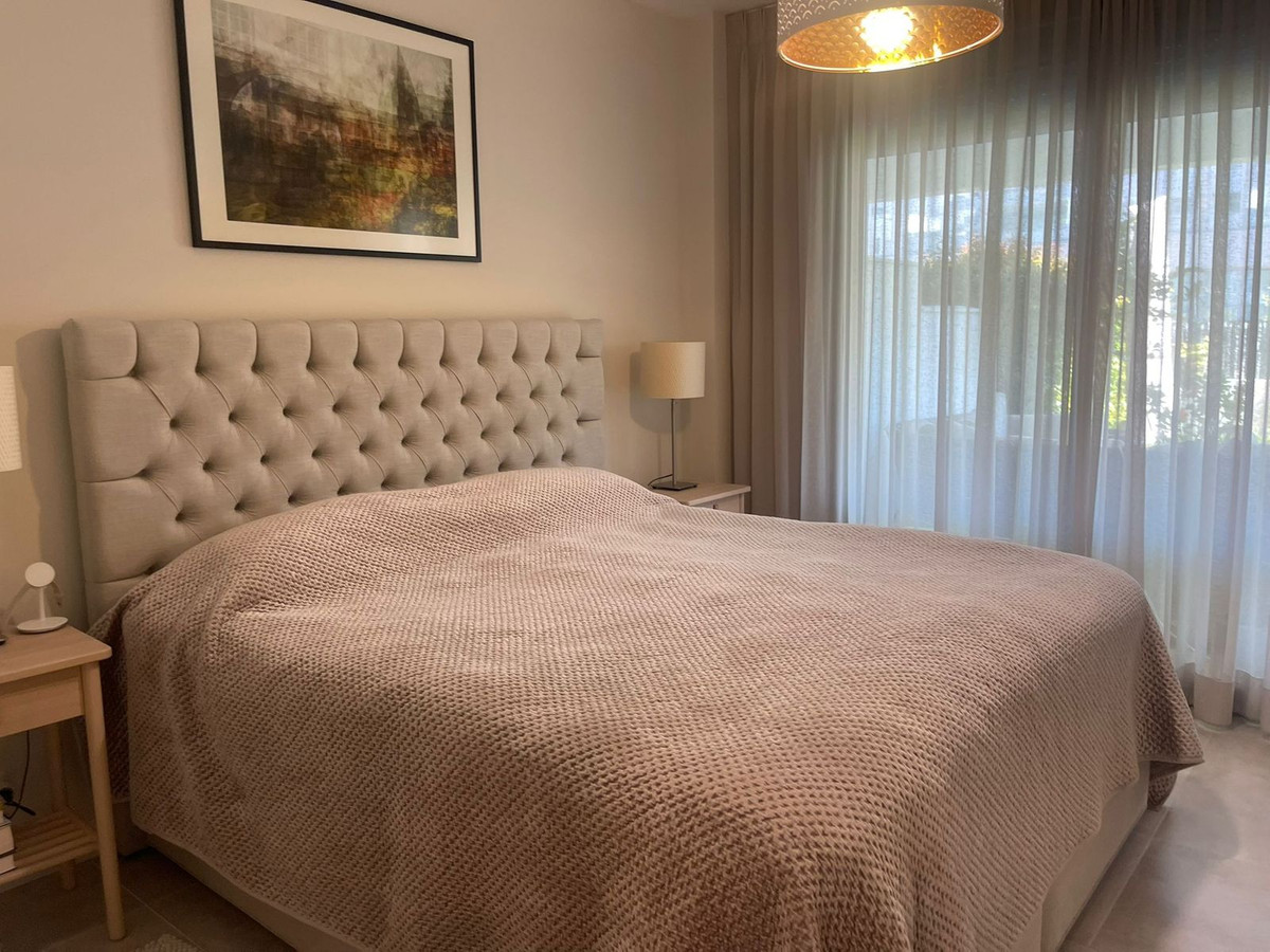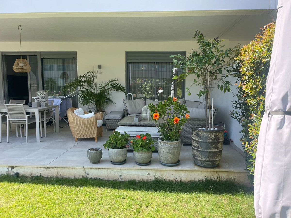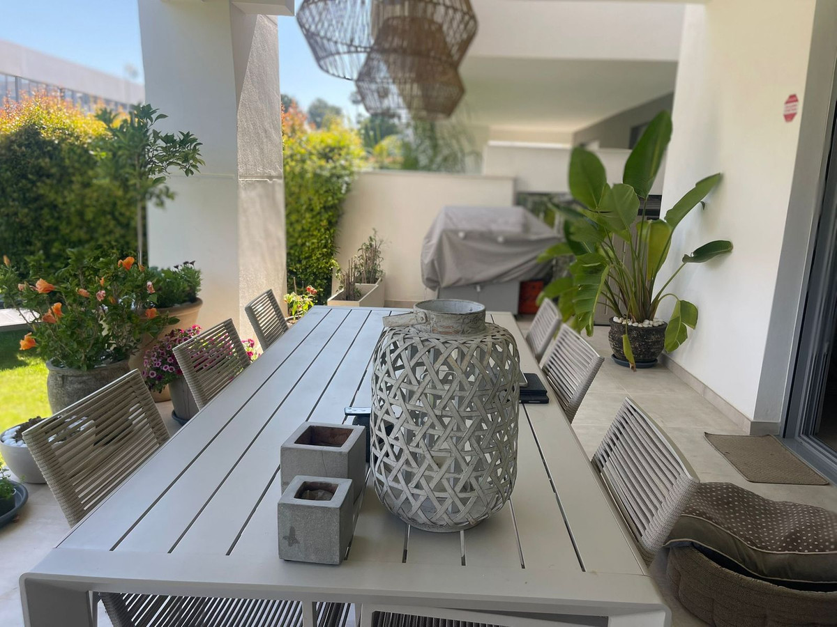 This stunning 3-bedroom, 2-bathroom apartment offers a perfect combination of style, space, and comfort. Featuring a large private garden and a large covered terrace, it’s ideal for relaxing, entertaining, or simply enjoying the Mediterranean climate year-round. Inside, you'll find a modern, fresh interior with a spacious layout, high-end finishes, and a fully equipped modern kitchen with a separate utility area.