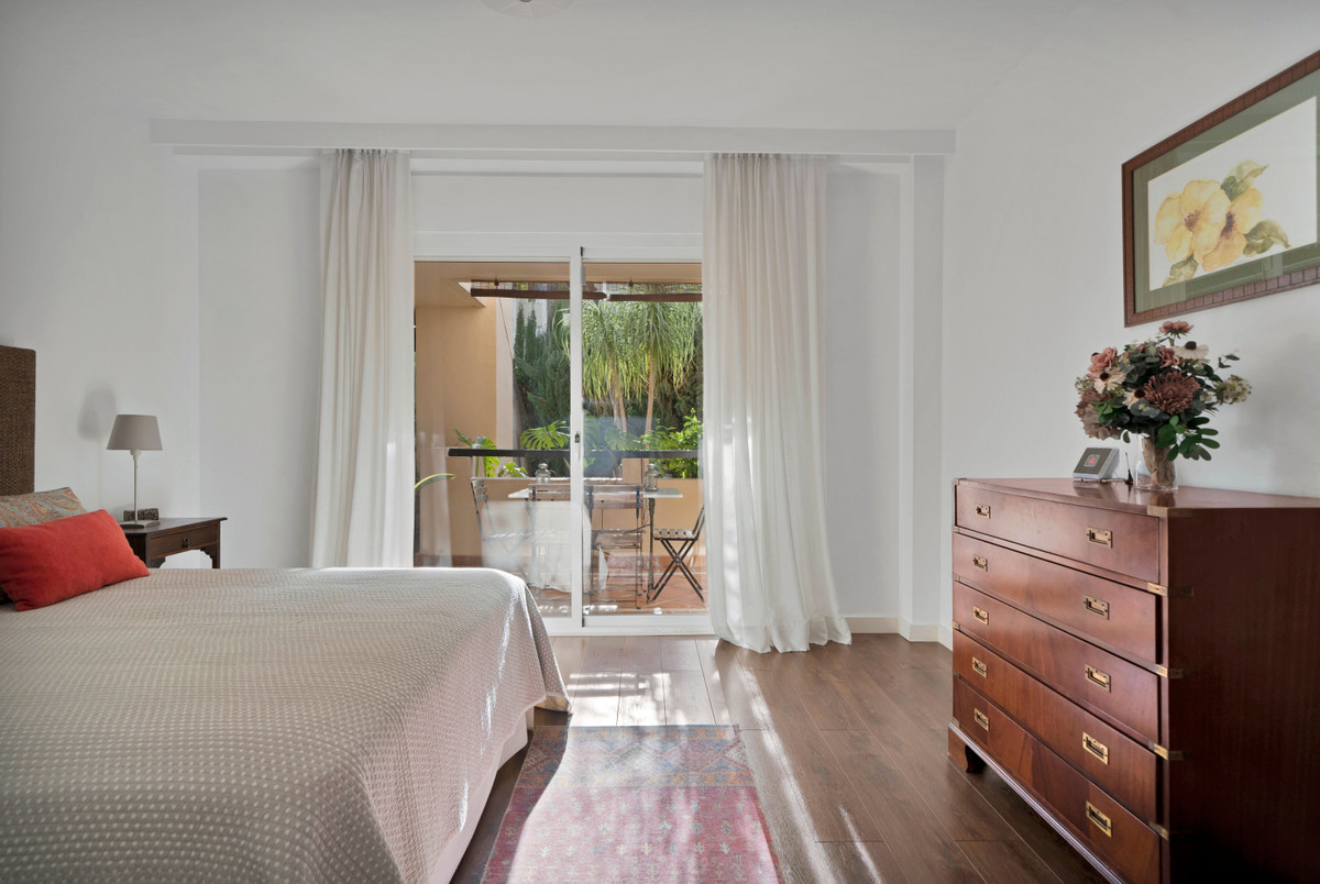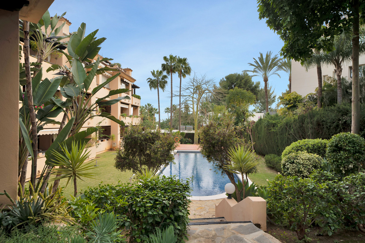 Experience luxury and comfort in one of Marbella's most exclusive areas!This elegant ground-floor apartment is located in a prestigious gated community in Nagüeles, just 6 minutes walking from The British International School of Marbella and 5 minutes from the beach.With 185 m² built area (159 m² usable area), it offers a spacious living-dining room with access to a private southwest-facing terrace, overlooking the complex's tropical gardens, ideal for relaxing or enjoying the outdoors. The separate, fully equipped kitchen includes a utility room, designed to facilitate daily living.It has three double bedrooms, all with en-suite bathrooms and built-in wardrobes. The master bedroom has direct access to the terrace, while another bedroom includes a cozy outdoor space enclosed with glass curtains, perfect as an office or study area.The apartment is in excellent condition and is ready to move into, although it also offers interesting options for updating. It includes a two-car garage, a storage room, and a vacation rental license, making it an ideal option both as a permanent residence and as an investment.A versatile property with privacy and tranquility, perfect for those seeking quality of life in Marbella.Come and discover your new home!