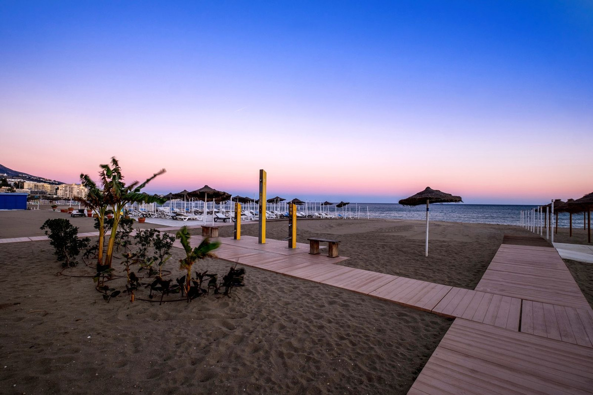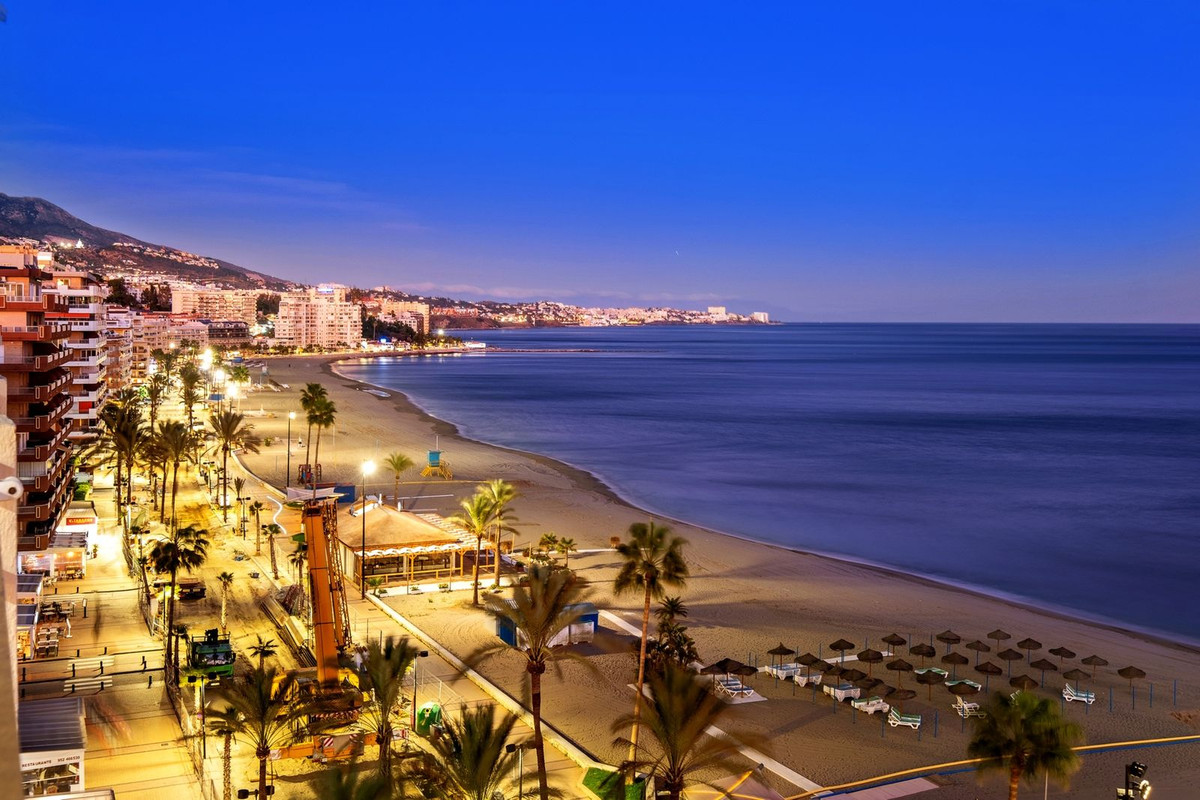 A spacious terrace offering front-row views of the sea and Fuengirola’s vibrant Paseo Marítimo