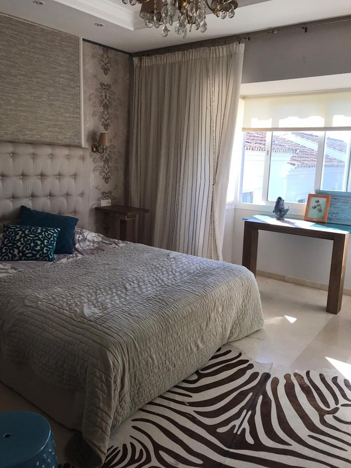 • Master bedroom with en-suite bathroom with two windows and a large terrace overlooking the palm trees and golf course.