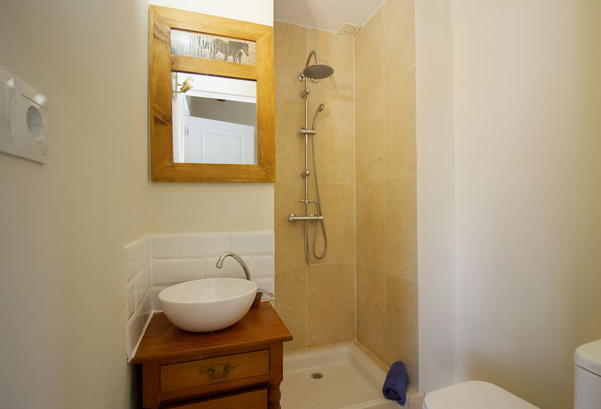 At the rear of the house is a studio apartment with a small kitchenette and a bathroom.