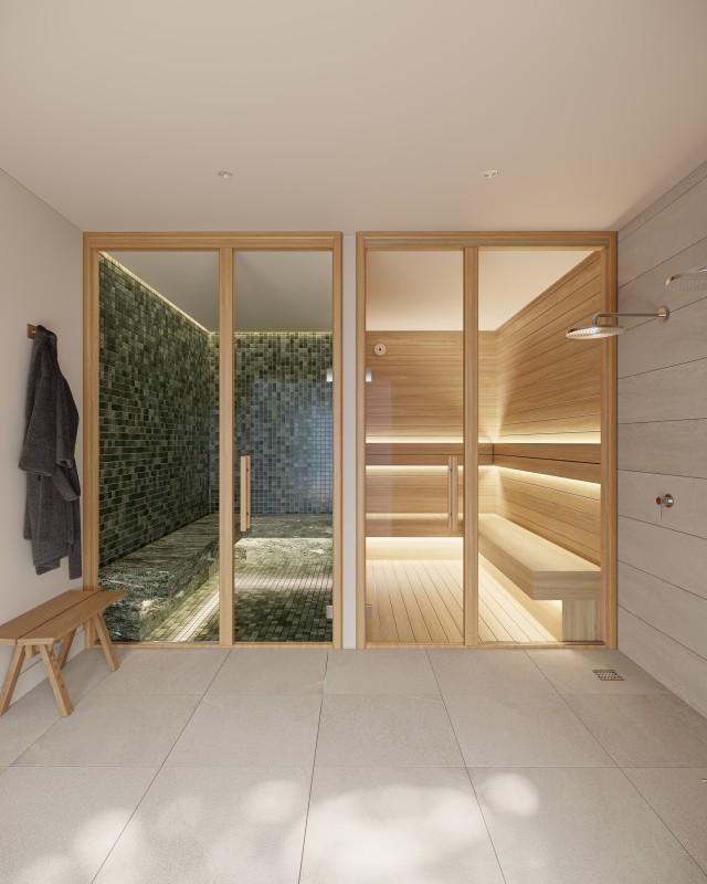 La résidence dispose de deux piscines (dont une pour enfants), de jardins paysagers, d'un espace détente avec barbecue et d'un espace bien-être intérieur comprenant une salle de sport, un sauna, un hammam et un espace yoga. Un simulateur de golf ultramoderne est même disponible pour s'entraîner toute l'année.