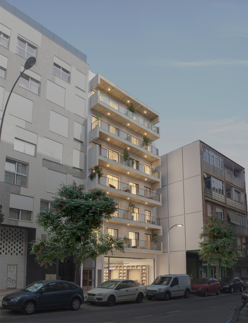 MALAGA CENTRAL consists of 35 complete and modern flats with storage rooms, all exterior with 1, 2 bedrooms and 2 bathrooms, with open kitchen, laundry room, living room, and balconies. Located in two building units, one building with 6 floors and another one with 4 floors with swimming pool, solarium, outdoor recreation area and drying area.