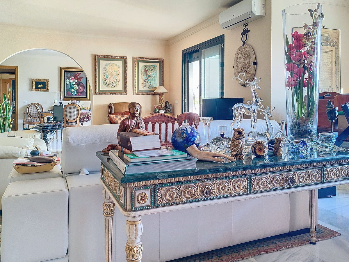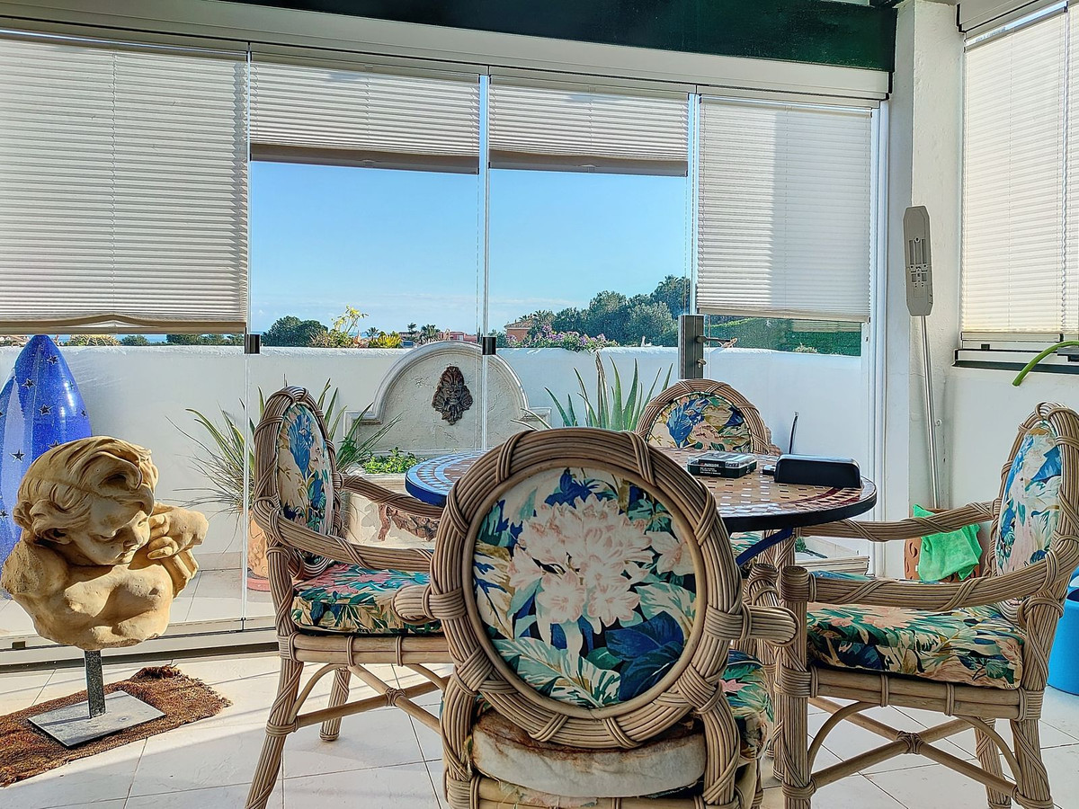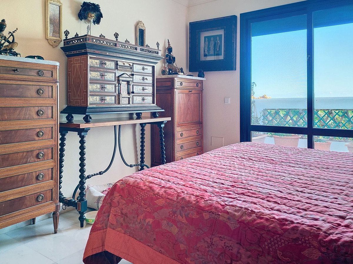 A large living room welcomes you with a frontal sea view; its square shape allows for furniture placement and is adaptable to all styles. The dining room merges with a large and modern fully equipped kitchen. The property also has 3 spacious bedrooms; the master bedroom has a bathroom with a bathtub and a separate shower, a dressing room, and its own terrace. The second bedroom is also en suite with a dressing room and bathroom, terrace, and a third spacious bedroom facing a third bathroom. The property was completely renovated 2 years ago. It is also sold with a parking space and a 53-square-meter storage room, unique in the community.