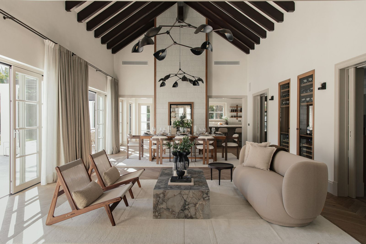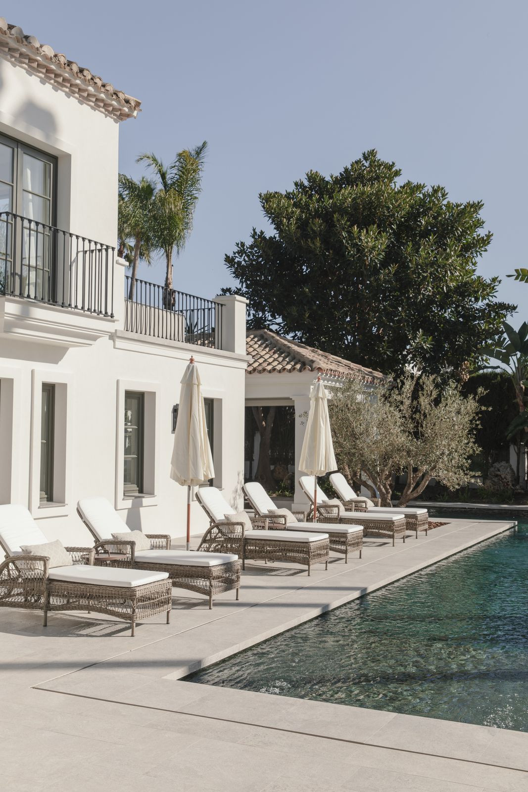 Recently built, the villa showcases outstanding craftsmanship and embraces a timeless French provincial aesthetic with elegant architectural features. Covered porches provide shaded lounge areas ideal for relaxing under the Mediterranean sun, while expansive terraces invite alfresco dining and laid-back social gatherings. A sunken chill-out area with a custom-designed bar beside the private pool creates the perfect setting for unforgettable summer evenings.