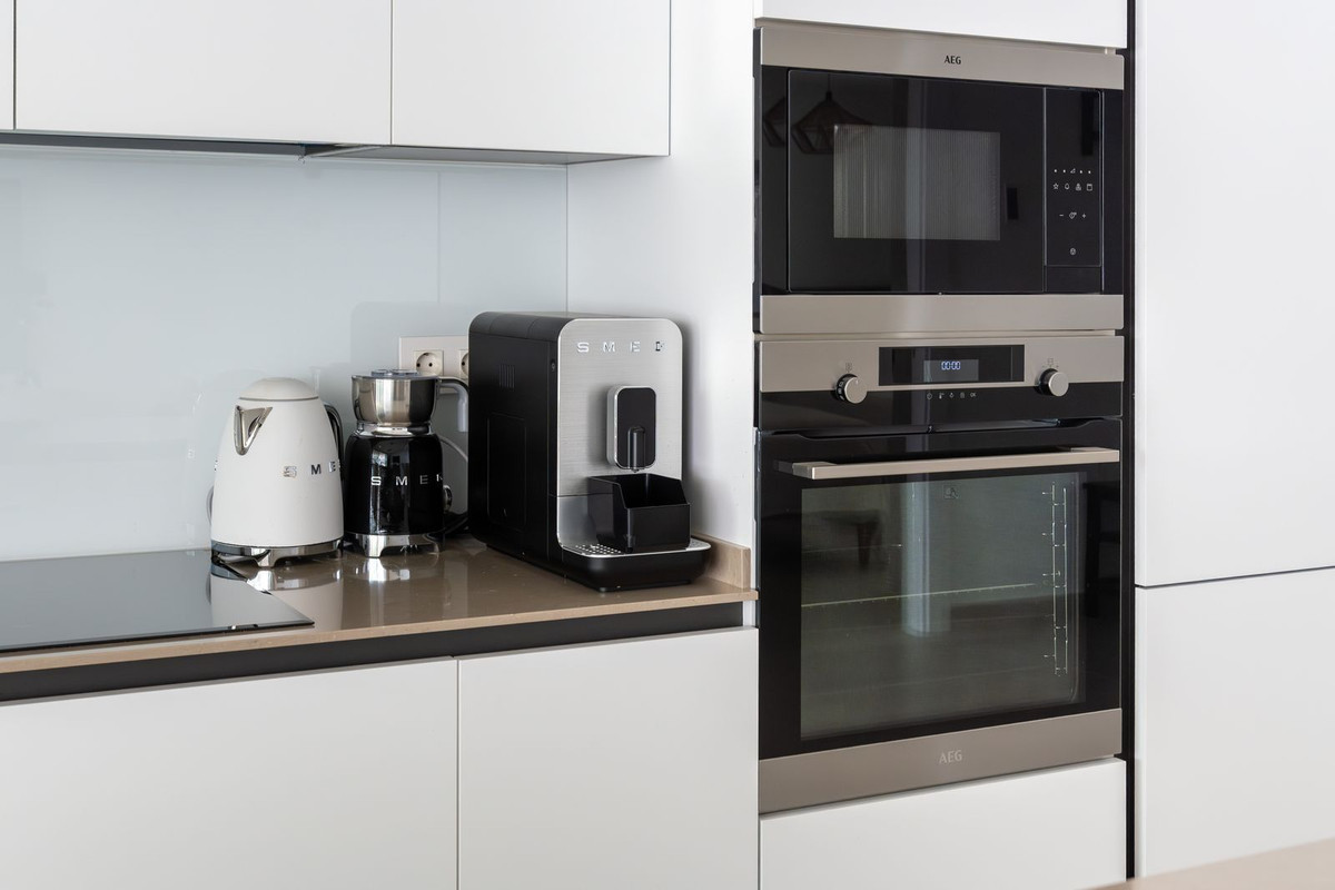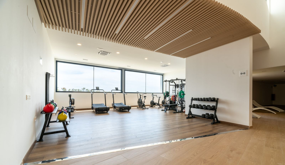 The complex offers exclusive communal facilities including an infinity pool, fully equipped gym, sauna, Turkish bath, landscaped gardens, chill-out area, and solarium — all with brand-new furniture and modern installations delivered in February 2024.