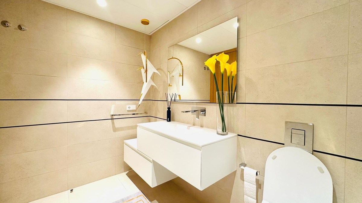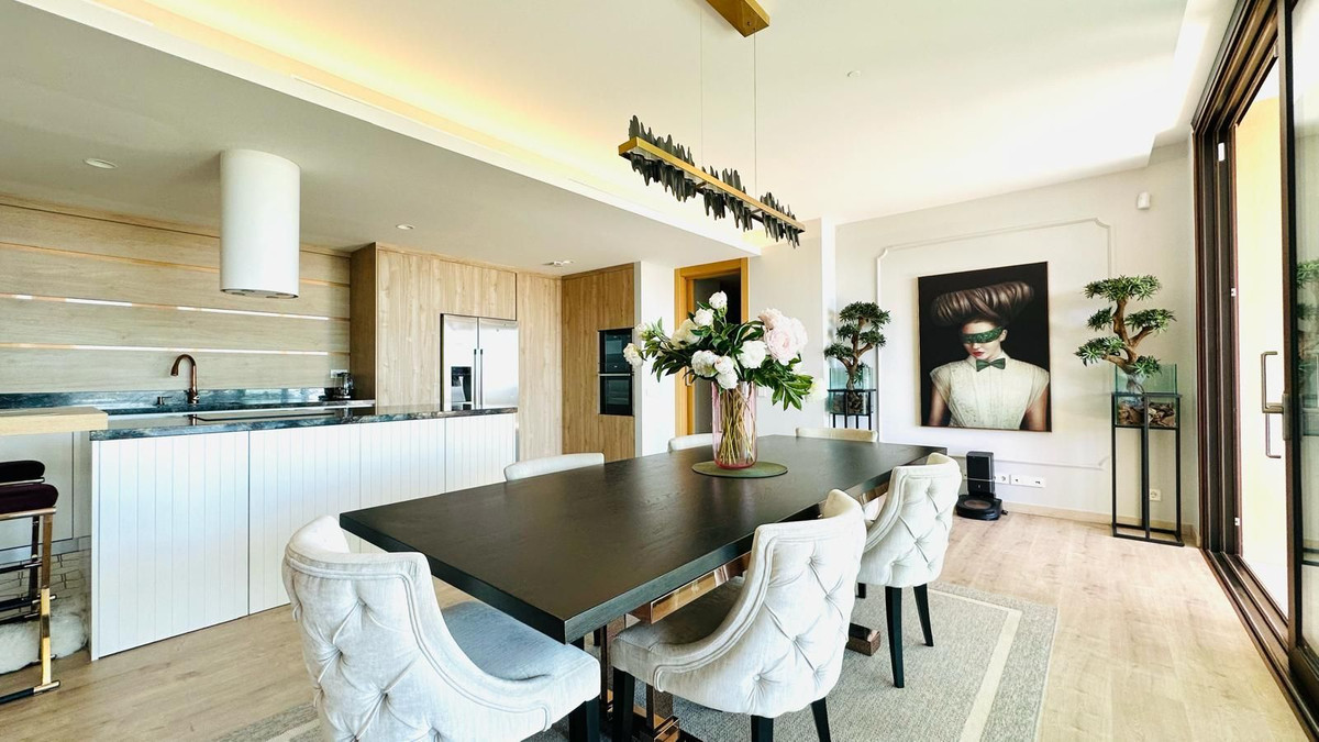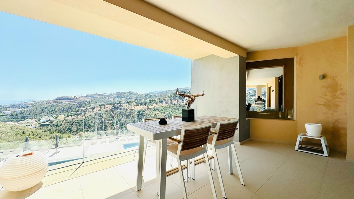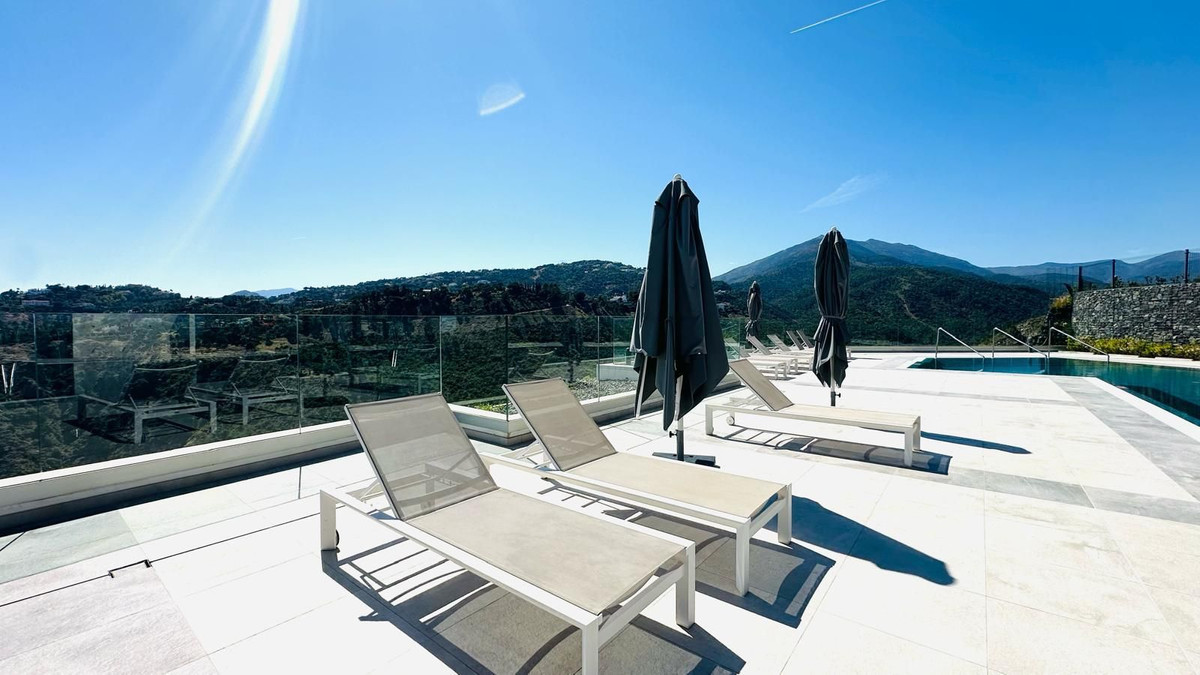 Inside, the apartment features an open-plan layout with a sleek modern kitchen, generous living and dining areas, and four well-appointed bedrooms—each with its own bathroom. Located in a secure, peaceful community, close to golf, nature, and a short drive from Marbella and Puerto Banús.