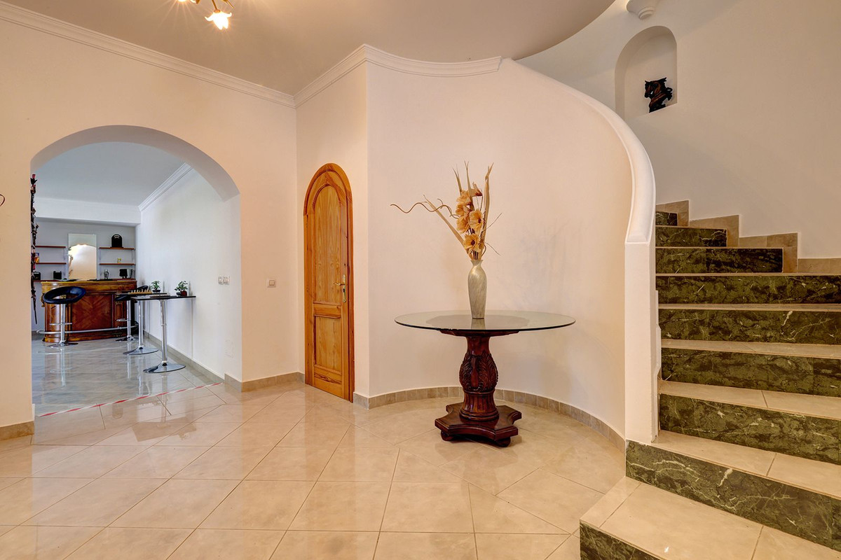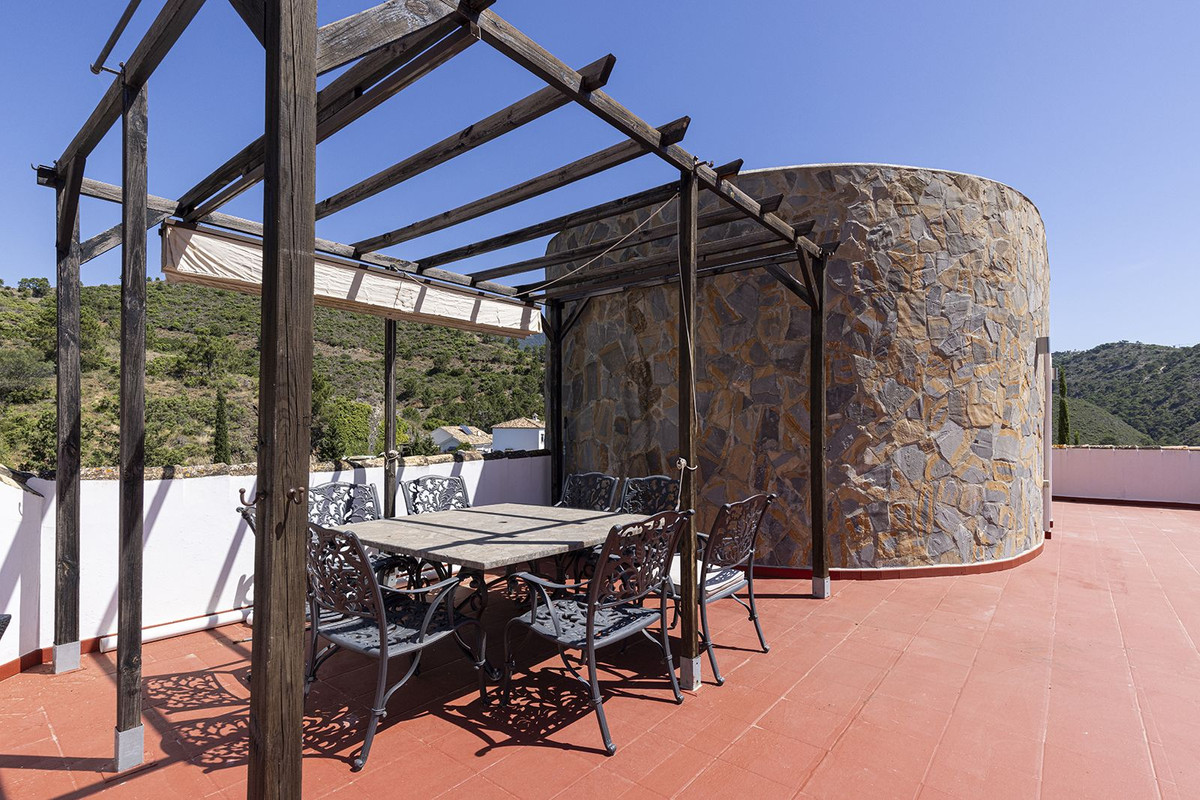 For location this property is perfect for peace and tranquillity but close to everything you need. Entering through the gates you are immediately impressed with the grand design of this villa. To the left you have a independent guest house with 2 one bedroom apartments, garage and gymnasium. Entering the main villa you are greeted with a wonderful sweeping staircase, high ceilings and views to the pool area. The huge living area comes with a log burner, dining area for 10 guests and a large kitchen with mountain views. Going down one level you have a large games room with bar and access to a large terrace. One bedroom with bathroom and the other side is the laundry area with plenty of storage too. On the first floor 3 large double bedrooms, all with en-suite and all leading onto the sunny terrace with fantastic mountain views. Master bedroom comes with an open fireplace, walk in wardrobe and huge bathroom. Top floor has a small office with access to the huge solarium roof terrace with over 80 m2 of space. The pool area is perfect for entertaining and the huge covered terrace boasts 4mtr high ceilings. There is separate access to the guest house at the side of the property allowing the main house total privacy. The property comes with a tourist licence making it a fantastic opportunity for rentals due to it's incredible location. A must see property!!