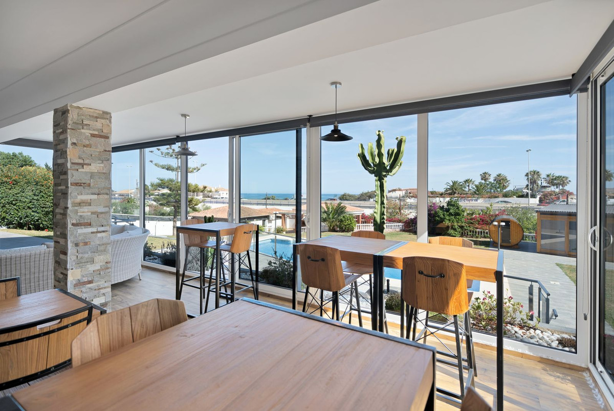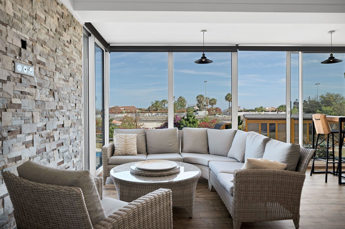 The villa provides secure parking for two cars and additional open parking for six more vehicles, along with a ramp for those with reduced mobility. Security features include an alarm system, security cameras, a monitoring area, and room access via a magnetic card system. Solar panels power the entire villa, ensuring excellent energy efficiency. The property is move-in ready with no renovations needed and holds an active tourist license.
