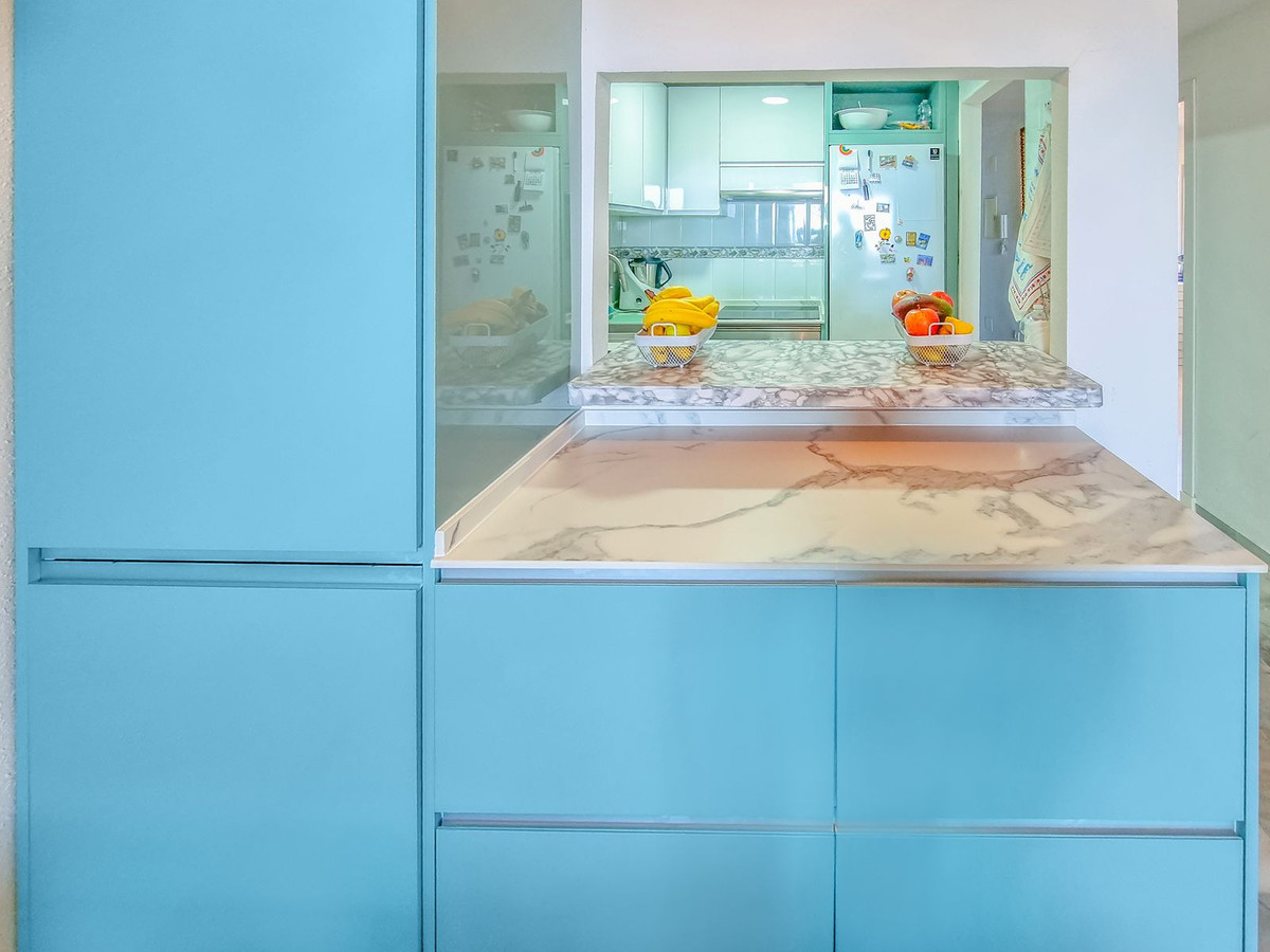 The master bedroom has its own en-suite bathroom with bathtub and the second bedroom has a full family bathroom next to it. Both bedrooms have fitted wardrobes and there is marble floors throughout the entire house.