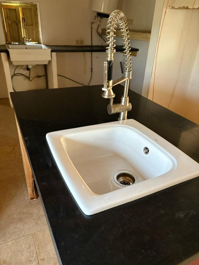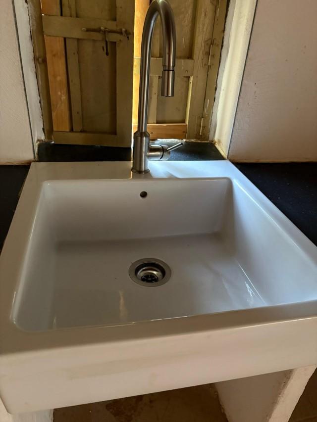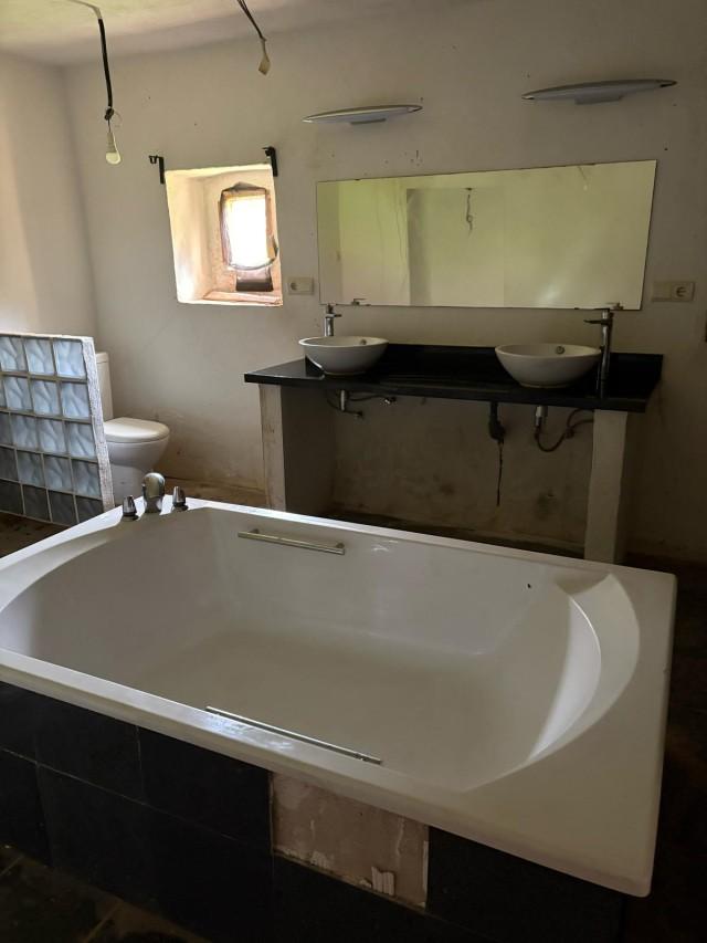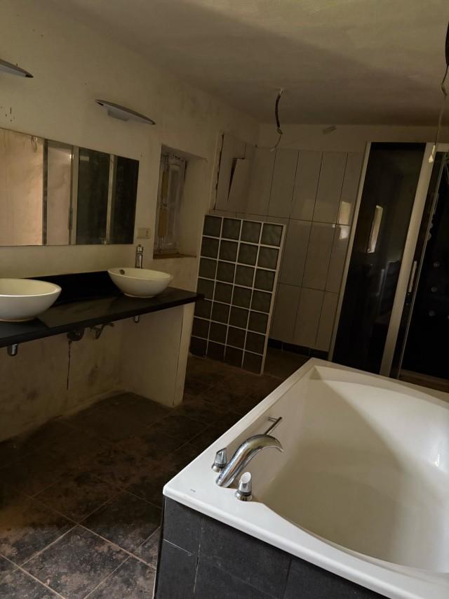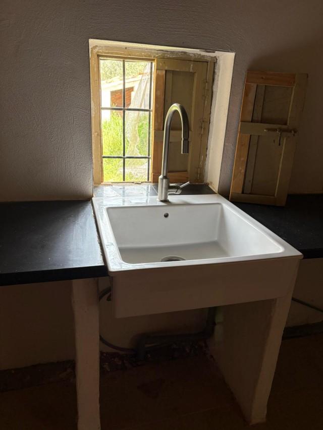 Cependant, des fenêtres neuves, une nouvelle porte d’entrée et des travaux de décoration intérieure restent à prévoir. Les installations de plomberie et d’électricité sont déjà en place dans la maison principale.