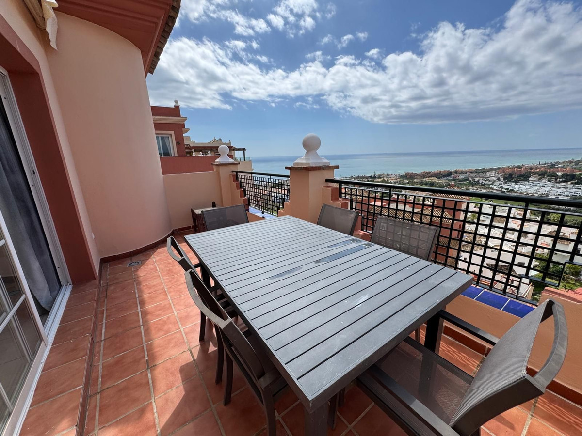Fantastic three bedroom duplex penthouse with splendid views of the sea and our coast. The property has two south facing terraces with unbeatable views. Three bedrooms, two bathrooms and a toilet. A pleasant, bright property. Independent kitchen (possibility of opening to the living room or dishwasher) with access to a small balcony and laundry room. The living-dining room has good dimensions and has access to a nice terrace. On the ground floor we have 2 bedrooms, 1 bathroom and 1 toilet. On the upper floor there is a spacious bedroom with an en suite bathroom and a large terrace. The property includes a private underground parking space. Communal swimming pool and paddle tennis court. Gated community located in the Duquesa area, 2 minutes drive from Puerto de la Duquesa, as well as the beaches, restaurants and bars. Request your visit, you will not be disappointed!!!!