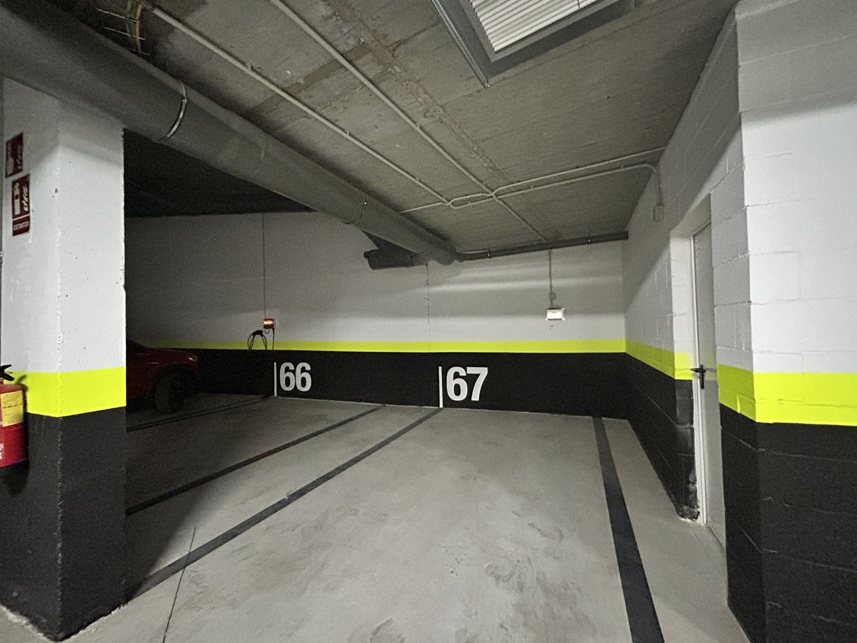 The property includes two parking spaces, separated by a practical 5 m² storage room. One of the spaces is equipped with an electric vehicle charger.