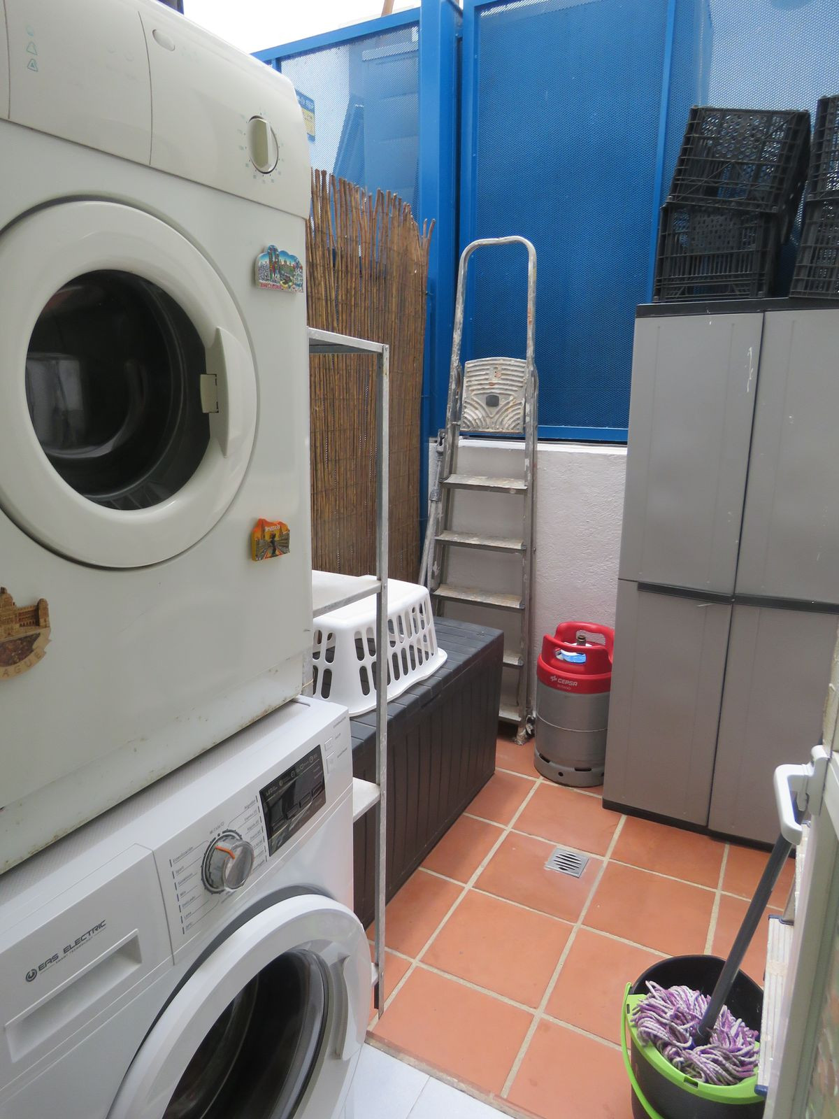 This well maintained ground floor garden apartment has so much to offer. It has an amazing outside space. A covered seating area and plenty of space for sunbathing and the BBQ. There is direct access to the community garden with pool. Inside we have two good size bedrooms and two bathrooms of which one ensuite. The semi open kitchen comes with all appliances including a wine fridge. There is also a large utility room. The property comes with underground parking and large storage. The small urbanization is extremely well maintained and has a large swimming pool area. Last put definitely is the location. This apartment has everything on its door step. Including the beach, Lidl, MacDonalds and many more shops, bars, and restaurants. All within a 5 minutes walk. This apartment sounds to good to be true? Well in this case it is true. This will not be around for long.
