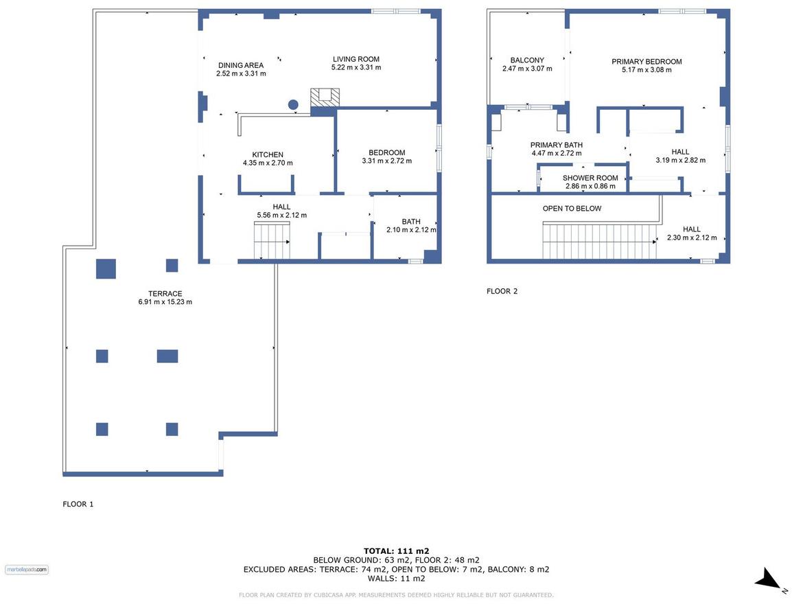 This immaculate property features two spacious bedrooms, with the luxurious master suite occupying the entire upper level. The master includes a private en-suite bathroom and opens onto a charming balcony terrace with picturesque views.