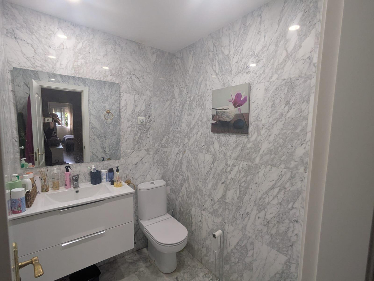 Fantastic three-bedroom apartment in Arroyo de la Miel, with a surface area of 115 m² and located in a private development with two swimming pools, large green areas and a paddle tennis court. The property has three bedrooms with built-in wardrobes, two full bathrooms with a bathtub, a kitchen equipped with a separate laundry room, a bright living room and a terrace with beautiful views. It includes a parking space, marble floors, white lacquered doors and pre-installation of air conditioning. East facing, ideal for enjoying natural light. It is second-hand but is in excellent condition. A great opportunity to live in a quiet and well-connected environment. Close to all services such as shops, public transport, etc.