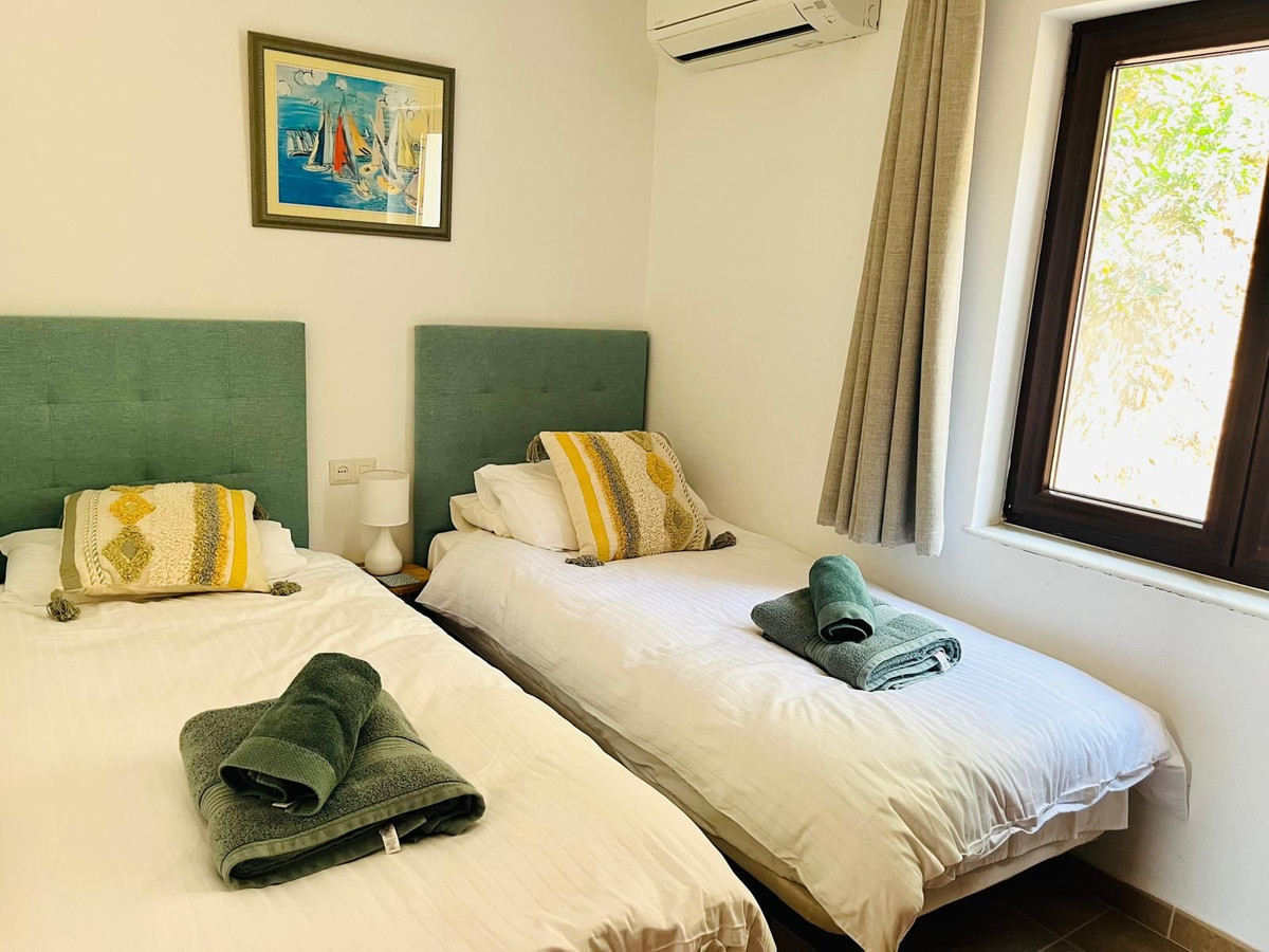 The back bedroom is a cozy twin with built-in wardrobes, ideal for children or visiting guests.