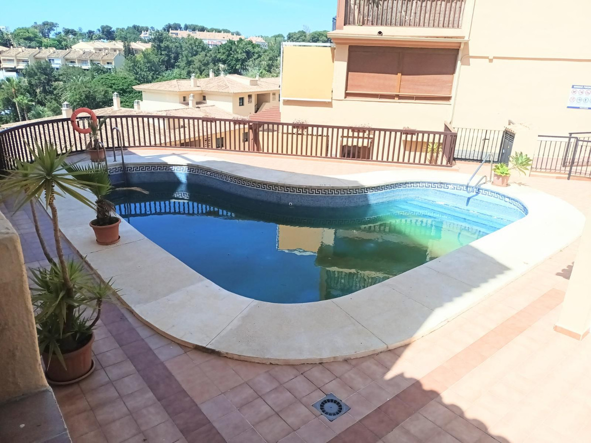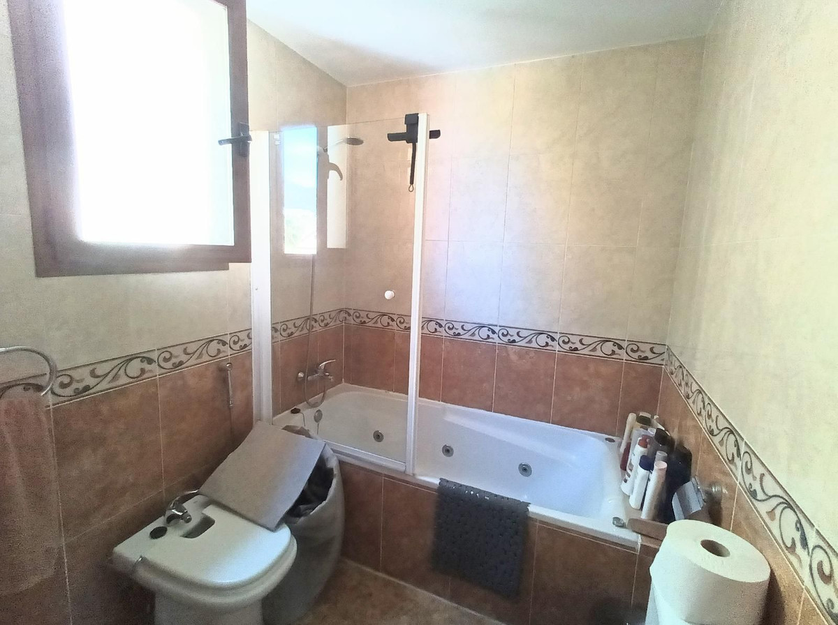 The first floor features a bright lounge and dining area, a fully equipped kitchen, two bedrooms, two bathrooms, and a large terrace offering stunning mountain and golf course views.