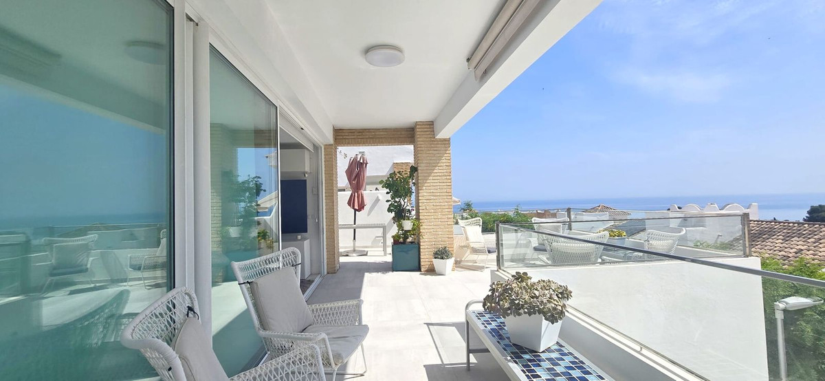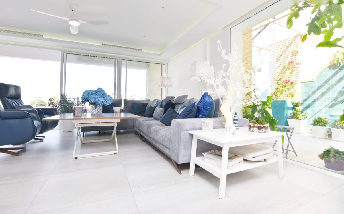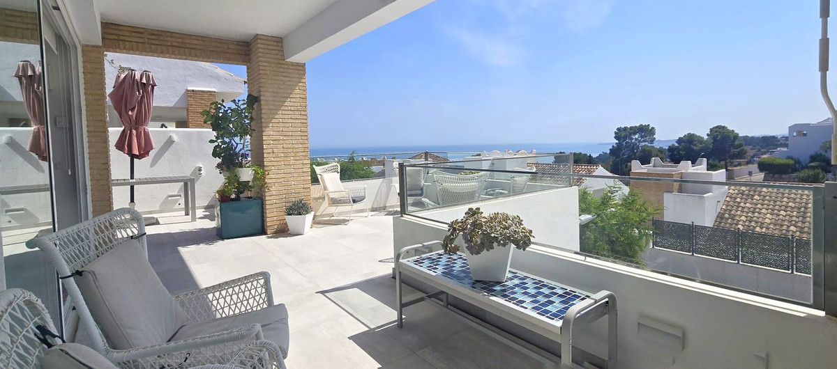 The property has a fully equipped modern kitchen with a large island and an outdoor kitchen with barbecue, 2 living rooms, 3 bedrooms, all with en-suite bathrooms, 1 guest toilet, 3 terraces, 1 private patio, a closed garage for 2 cars, storage room and photovoltaic panels that significantly reduce electricity consumption. All within the prestigious Big Blue urbanisation, in Torremuelle, Benalmádena Pueblo, with a fantastic communal swimming pool, residents gym, social club and security system.