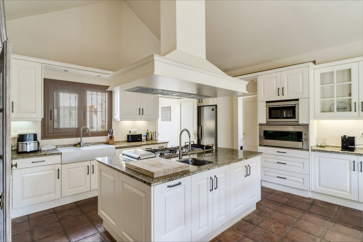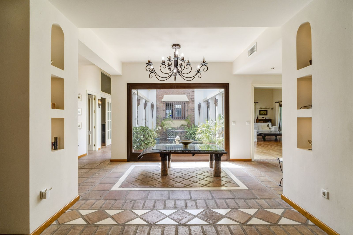 Step inside and be captivated by the villa's timeless elegance and modern comforts. A welcoming indoor patio sets the tone, leading you to a very large kitchen complete with a spacious dining area that effortlessly extends onto a wonderful, expansive terrace. This seamless indoor-outdoor flow is perfect for elegant entertaining and delightful al fresco dining amidst the Marbella climate. Throughout the villa, enjoy the warmth and sophisticated feel of wooden floors and the ultimate comfort of underfloor heating, ensuring a pleasant ambiance in every season. The spacious living area boasts impressive high ceilings, enhancing the sense of grandeur and openness. Beyond the kitchen, the villa features incredible additional terrace areas, artistically adorned with lush wild vine plants, providing picturesque spots for relaxation and enjoyment.