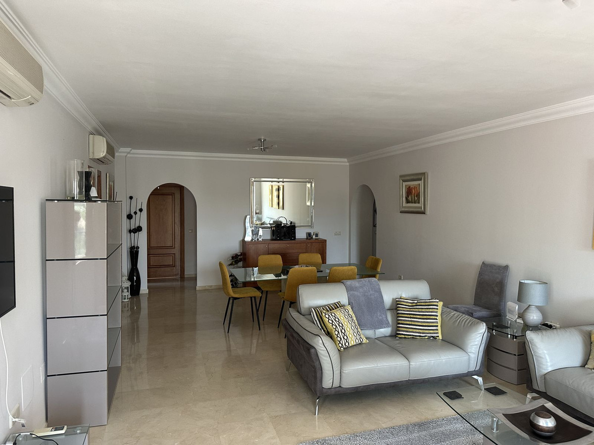 All rooms have installed individual air conditioning units. The apartment benefits from high gloss marble floors throughout, new kitchen fitted with all appliances, underground parking, storage, safe, video-entrance. Benefits include free 300mb fibre optic broadband and over 80 international tv and radio stations included in the community fees.