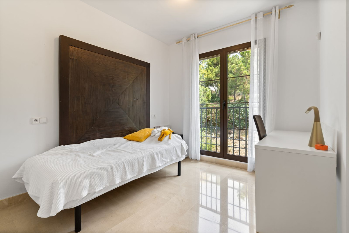 Enjoy a bright and airy living space that opens onto a generous 28m² private terrace – the ideal spot for al fresco dining or simply soaking in the uninterrupted vistas over the Los Arqueros golf course and surrounding mountains.
