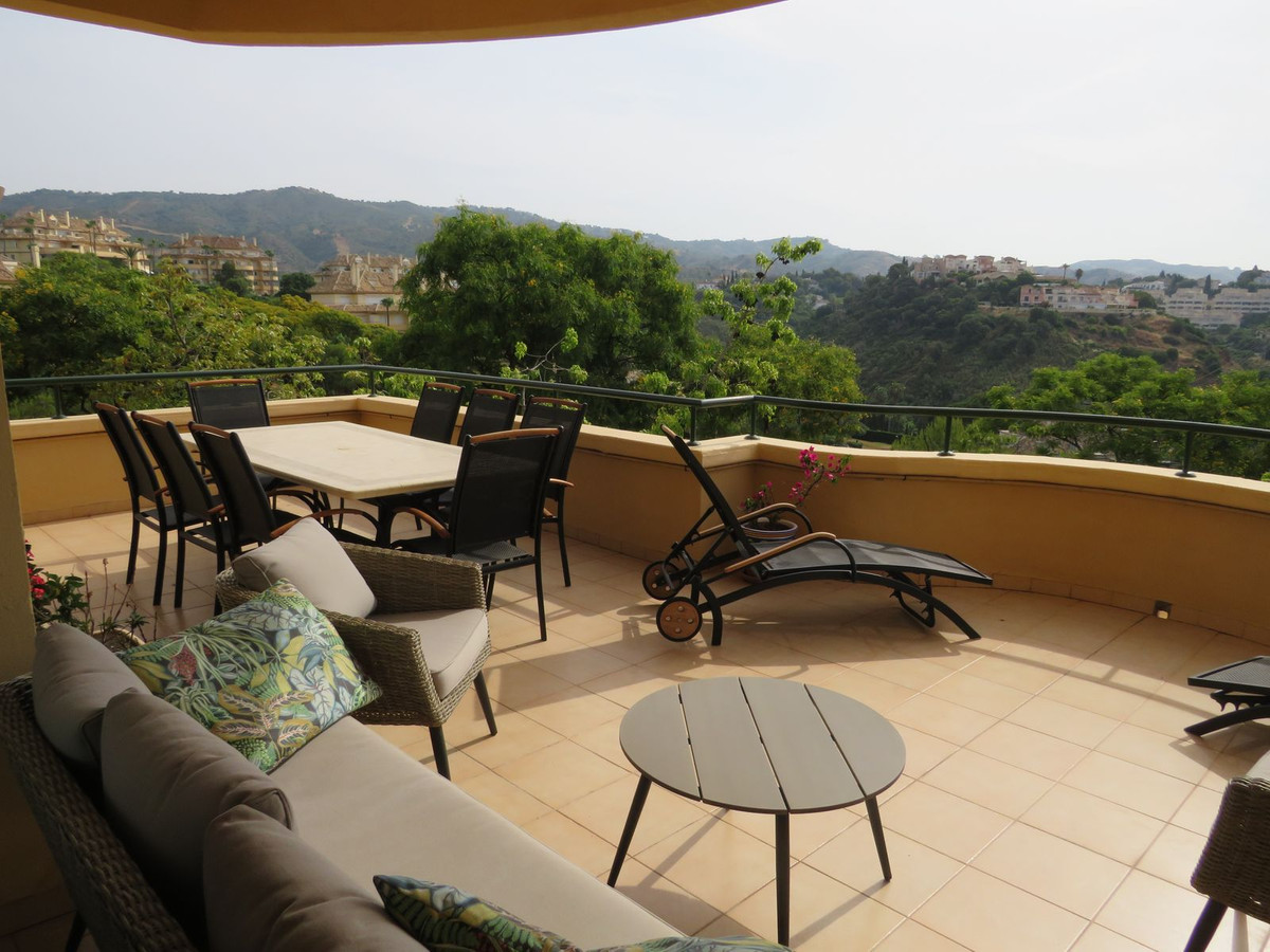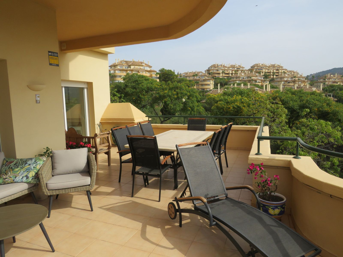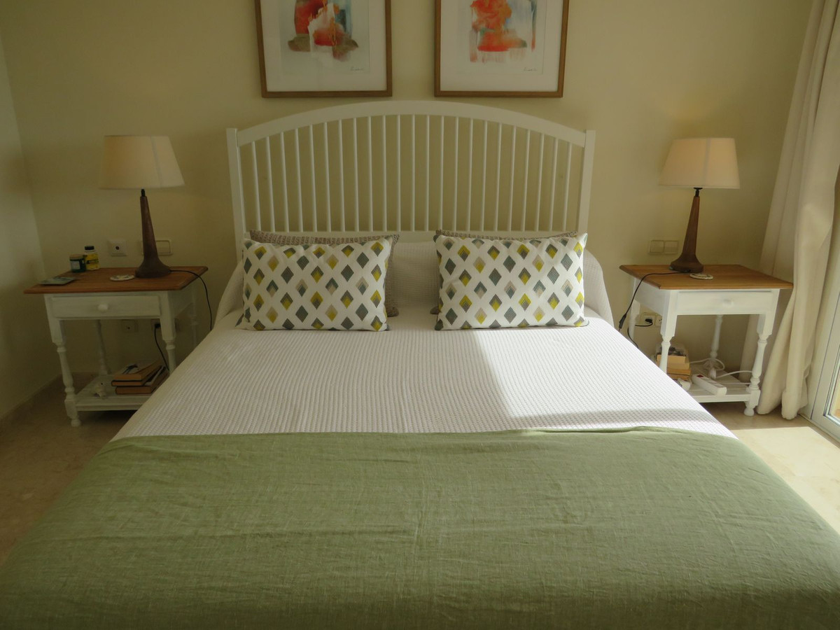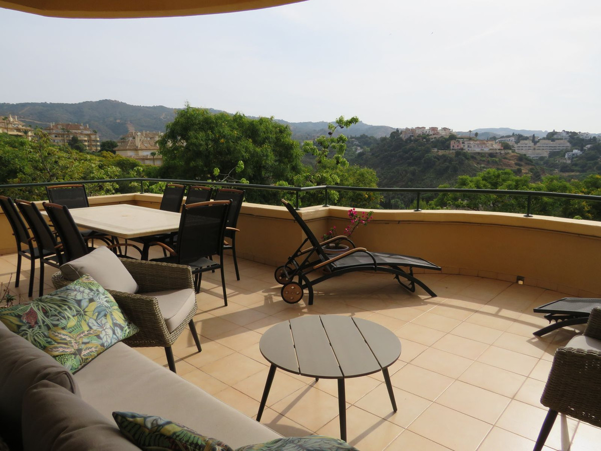 Luxury apartment located in one of the most desirable locations within Elvira in Marbella. This elevated ground floor apartment comprises 3 large bedrooms and 3 bathrooms with the master bedroom and bedroom two being en-suite, the master having direct access to the large (55m2) South facing terrace which receives lots of sun and boasts great open views and views over the lake which is located on Green Life Golf Course. Bedroom two also has a good size terrace on the back of the property and this receives sun at the end of the day. The living room is a good size and is bright and open and has access to the large sunny terrace and off the living/dinning room you’ll find the fully fitted kitchen and utility room. Bedroom three is also a good size and there is a third bathroom which bedroom three she guests would use. The property comes fully furnished and has a large underground garage space and store room.