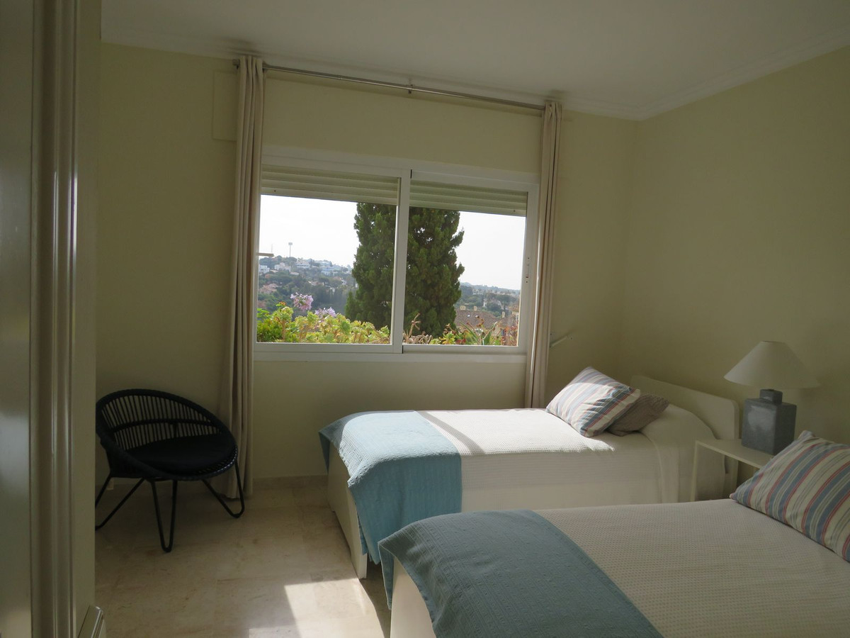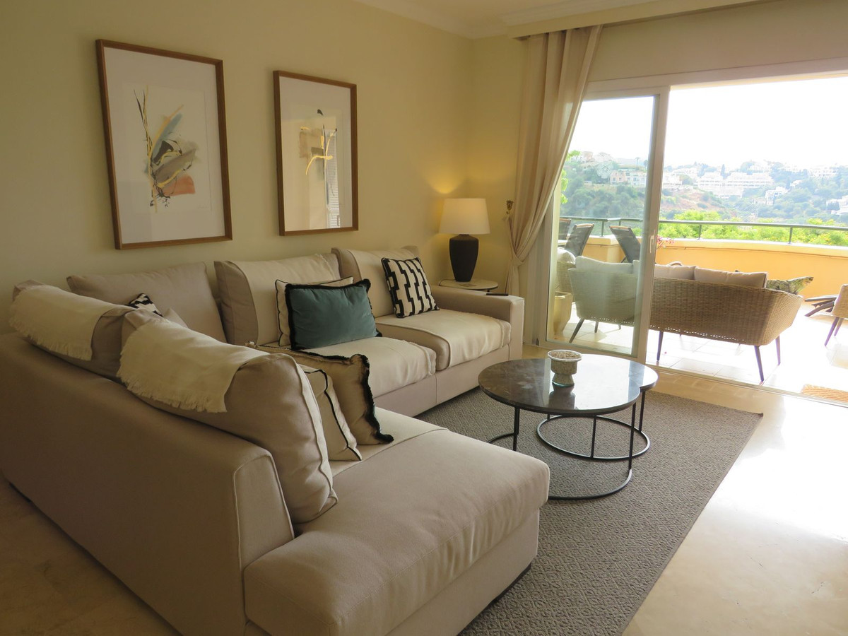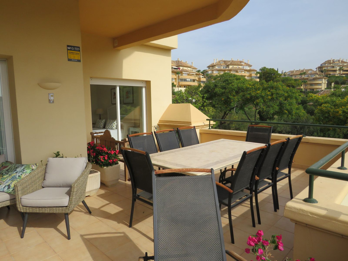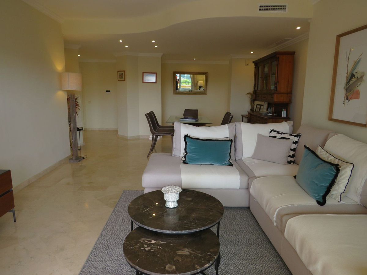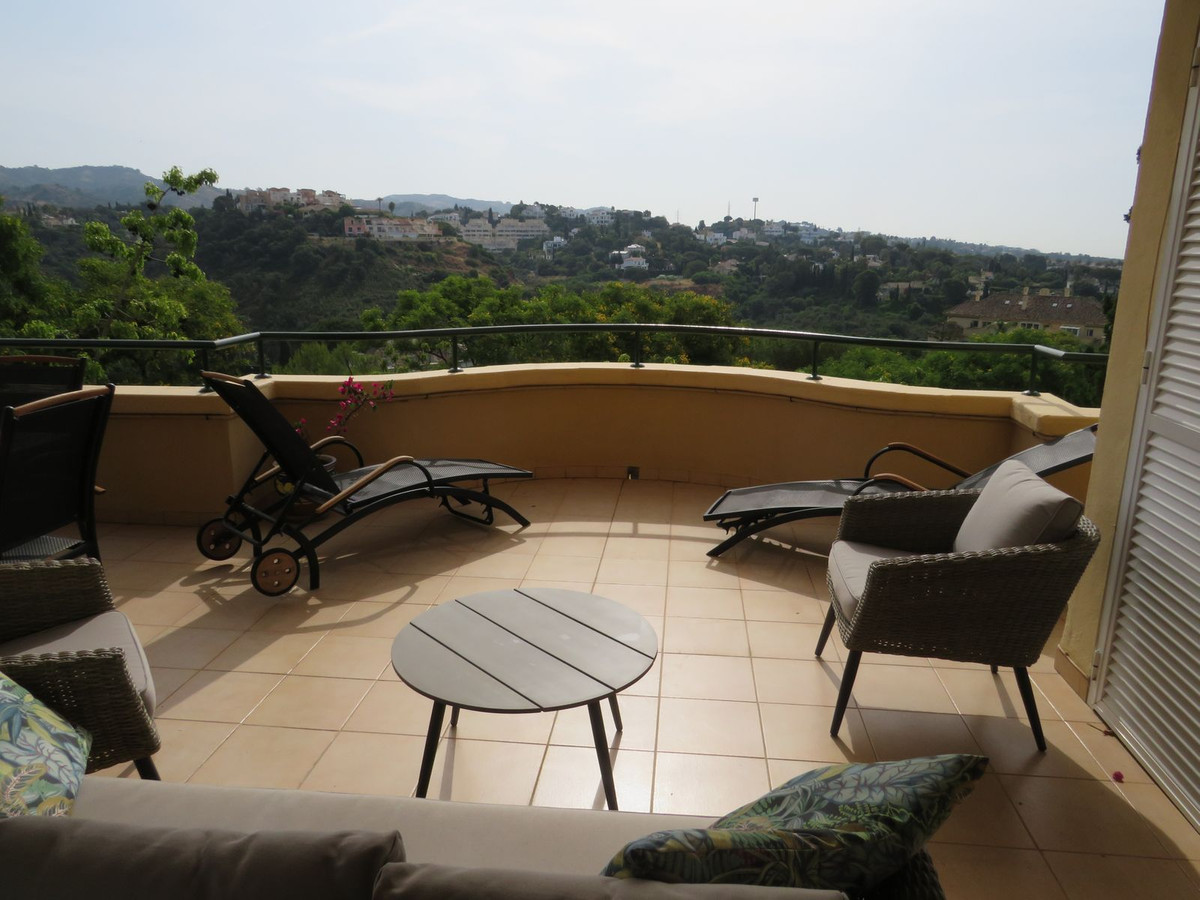 Luxury apartment located in one of the most desirable locations within Elvira in Marbella. This elevated ground floor apartment comprises 3 large bedrooms and 3 bathrooms with the master bedroom and bedroom two being en-suite, the master having direct access to the large (55m2) South facing terrace which receives lots of sun and boasts great open views and views over the lake which is located on Green Life Golf Course. Bedroom two also has a good size terrace on the back of the property and this receives sun at the end of the day. The living room is a good size and is bright and open and has access to the large sunny terrace and off the living/dinning room you’ll find the fully fitted kitchen and utility room. Bedroom three is also a good size and there is a third bathroom which bedroom three she guests would use. The property comes fully furnished and has a large underground garage space and store room.