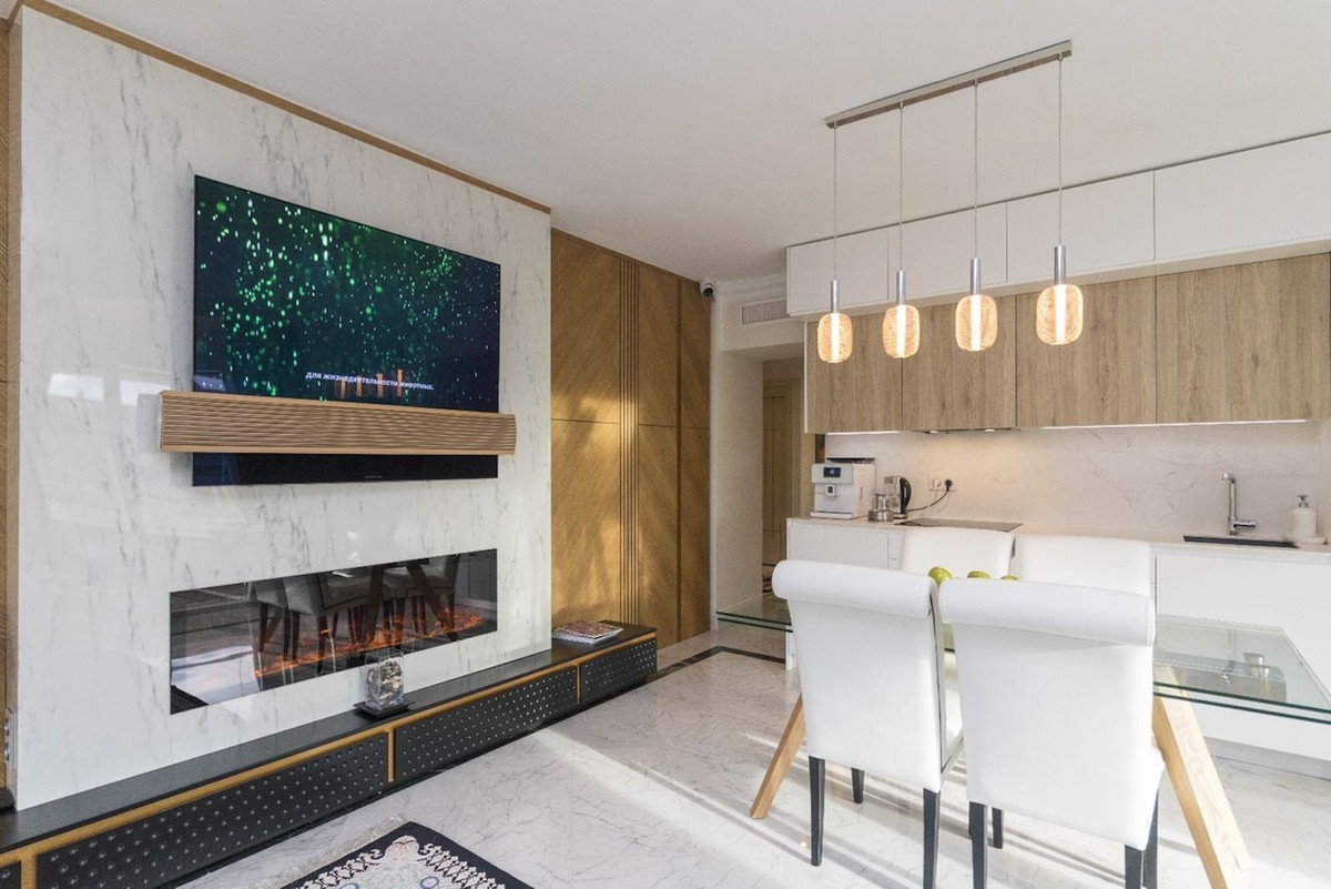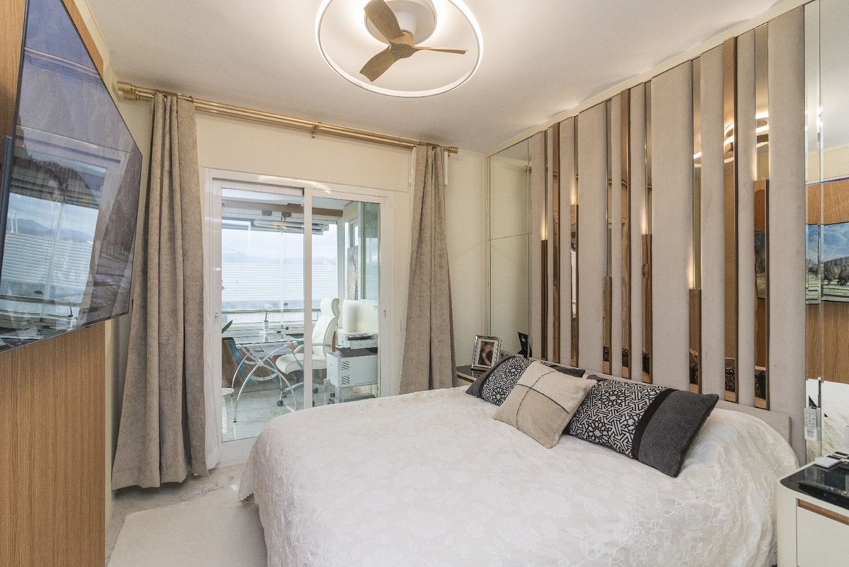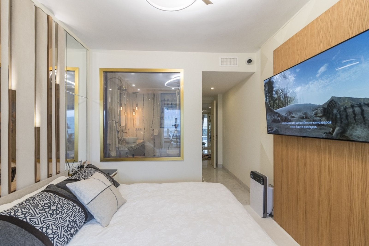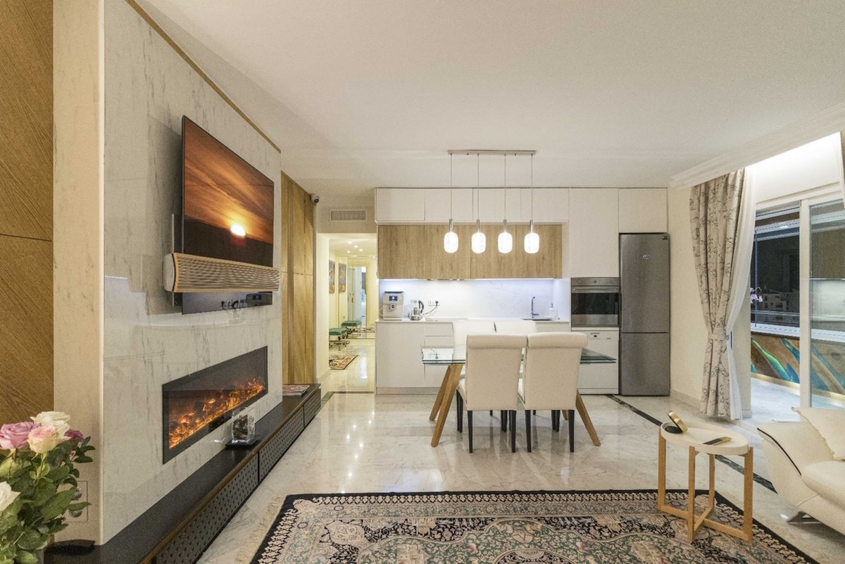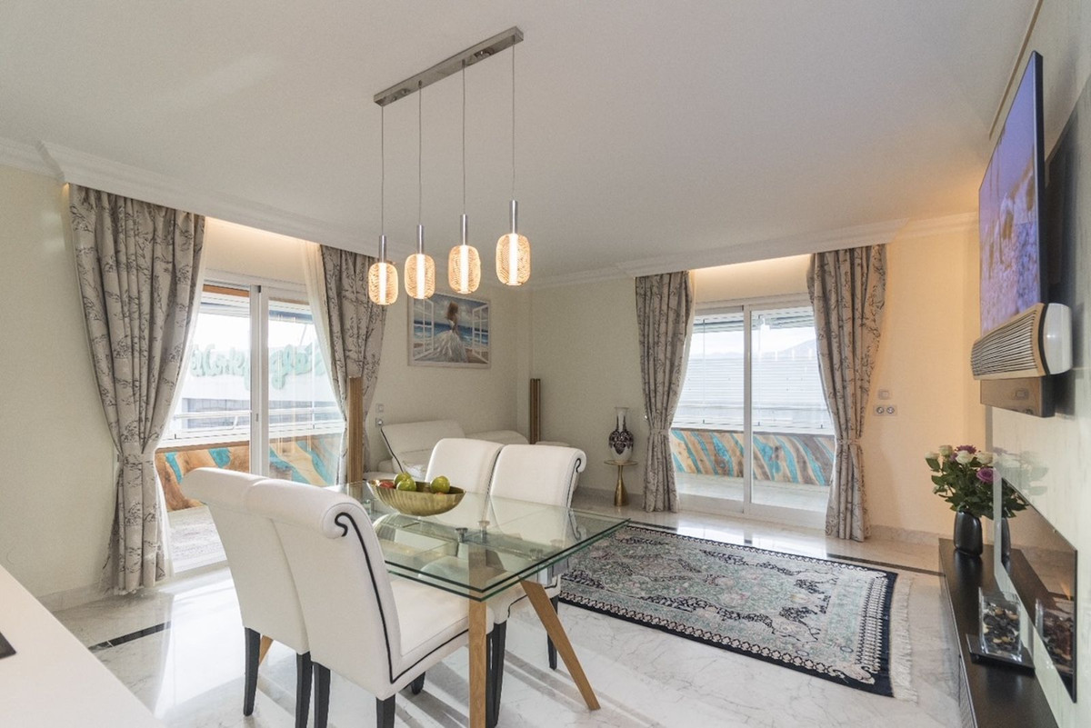 Fantastic apartment, renovated high standard, with high quality materials, ideal for living comfortably, without having to use the car. It is spacious, corner, on a high floor. Very convenient location - next to the sea, in front of Puerto Banus and El Corte Ingles. Sunny. Located in a pedestrian street, quiet, no traffic. Beautiful sea and mountain views.