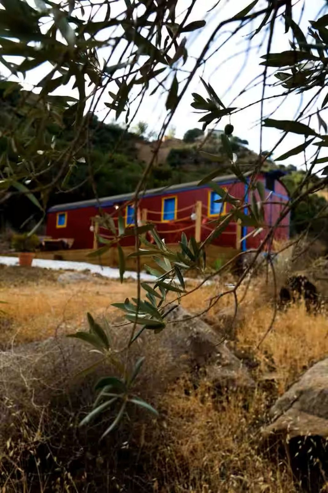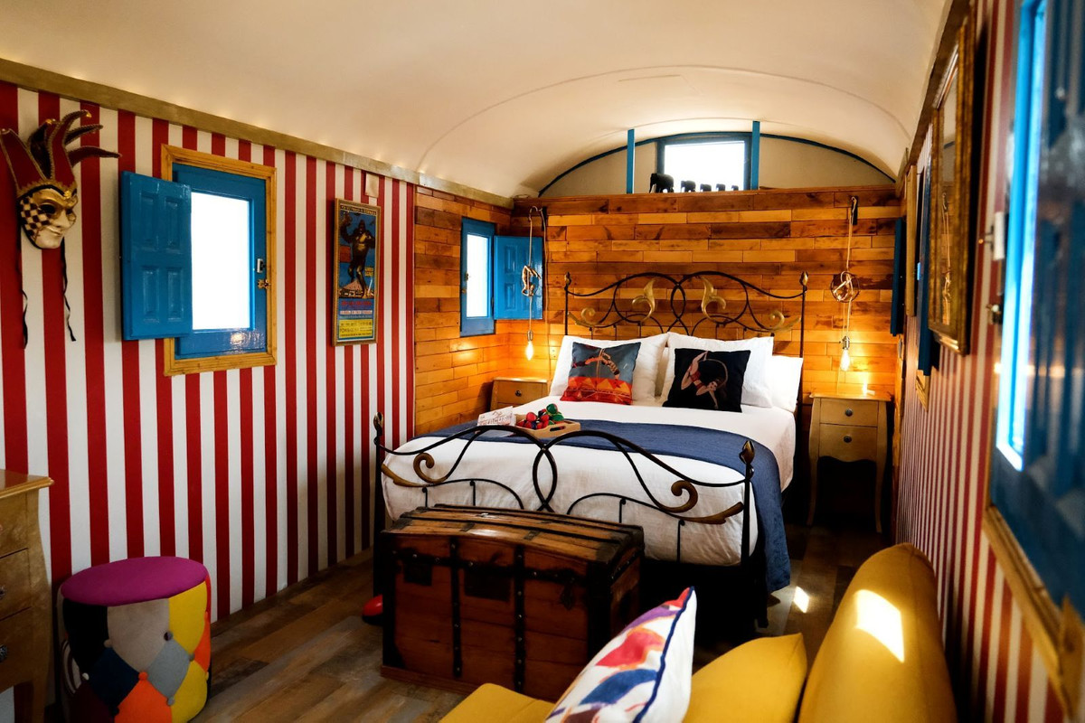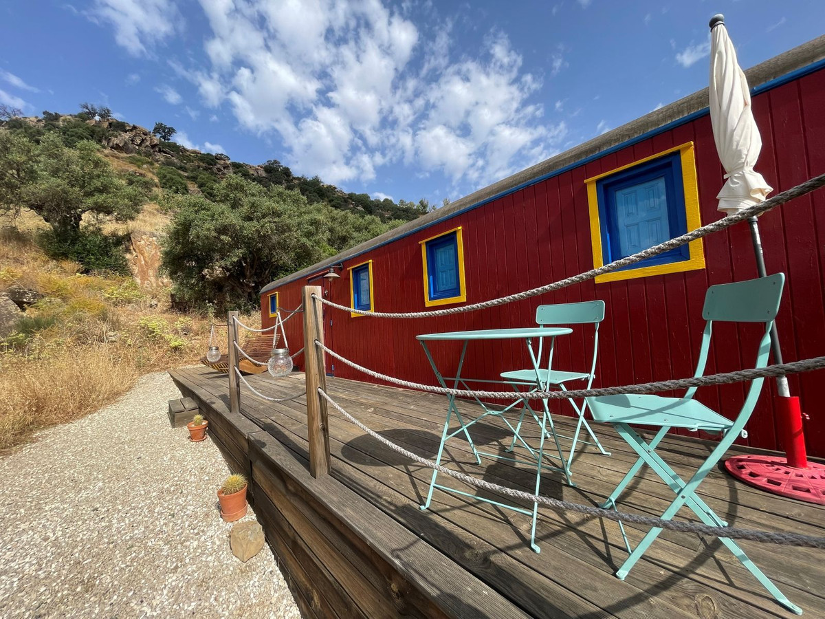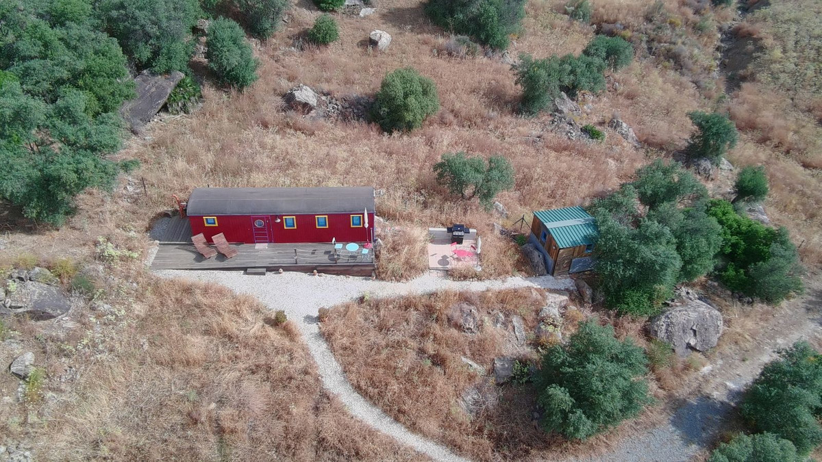 A short but beautiful hillside track takes you up to the properties unique, original Circus Wagon. Built in the 19th century, the wagon now nestles secluded in the hillside and has been renovated up to modern standards and is currently available for rental through Airbnb. The wagon has full tourist licenses and its success is proven by its multiple 5 star reviews. Displaying original artwork from circuses across Spain and uniquely decorated it is designed in full circus theme.