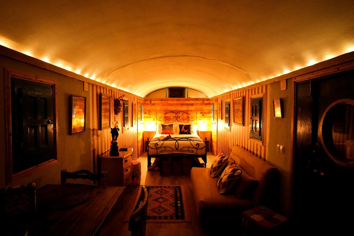 Retaining all its original features, this circus wagon has been restored and features a super comfortable luxury double bed, dining area, sofa and a stylish fully equipped kitchen with all modern conveniences.