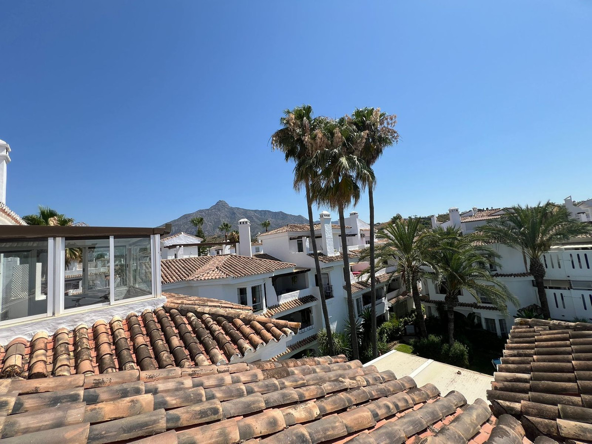 Bright and spacious duplex penthouse in Los Naranjos, Marbella, overlooking the pool and the iconic La Concha mountain.