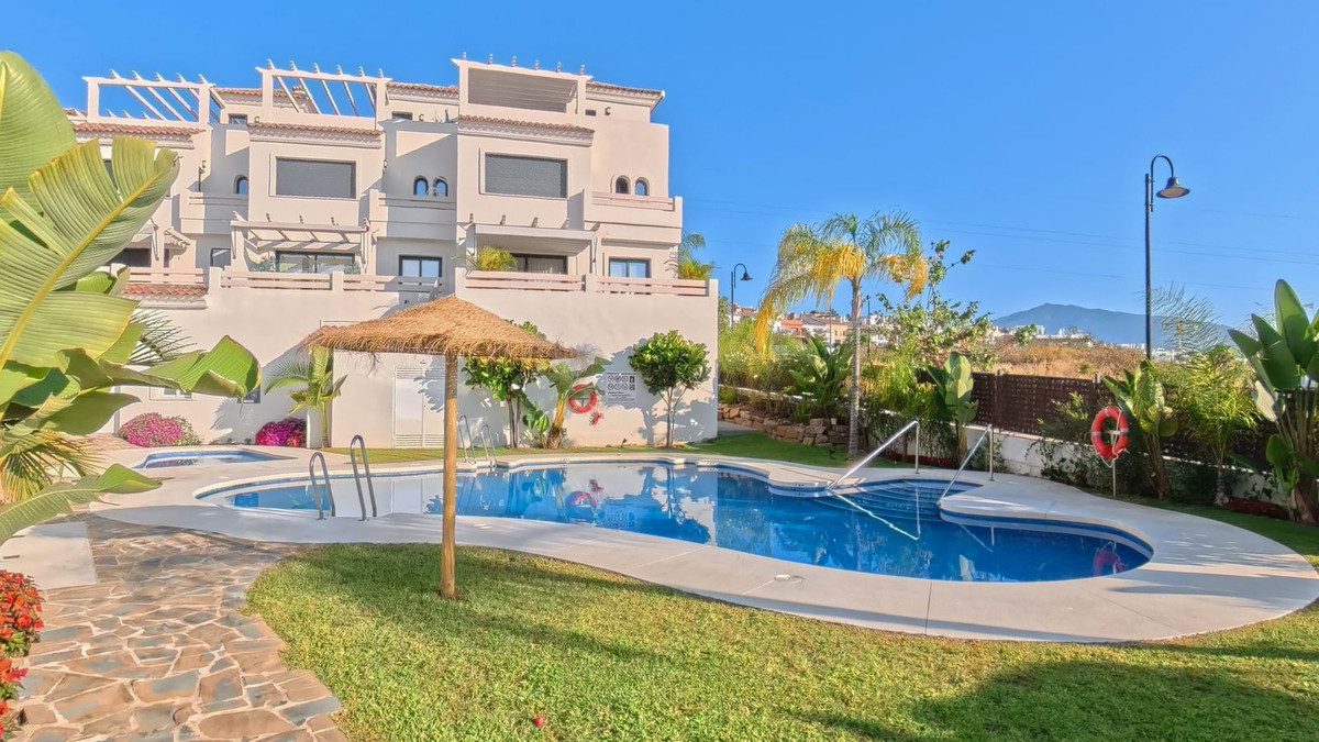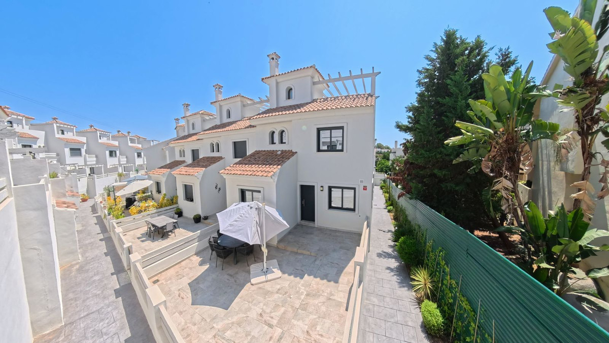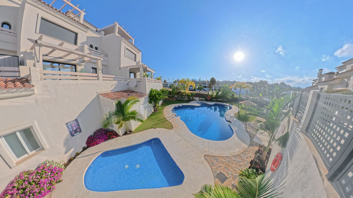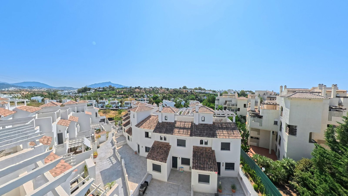 Located within the exclusive El Campanario area of Estepona, this elegant corner townhouse is part of a peaceful development of just 47 homes. Designed with traditional Andalusian architecture, the property enjoys spacious terraces and an abundance of natural light throughout.