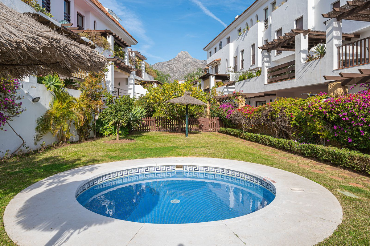Located in a gated community with security, the complex offers a swimming pool and beautifully maintained tropical gardens, providing a peaceful oasis just minutes from Marbella’s city center.