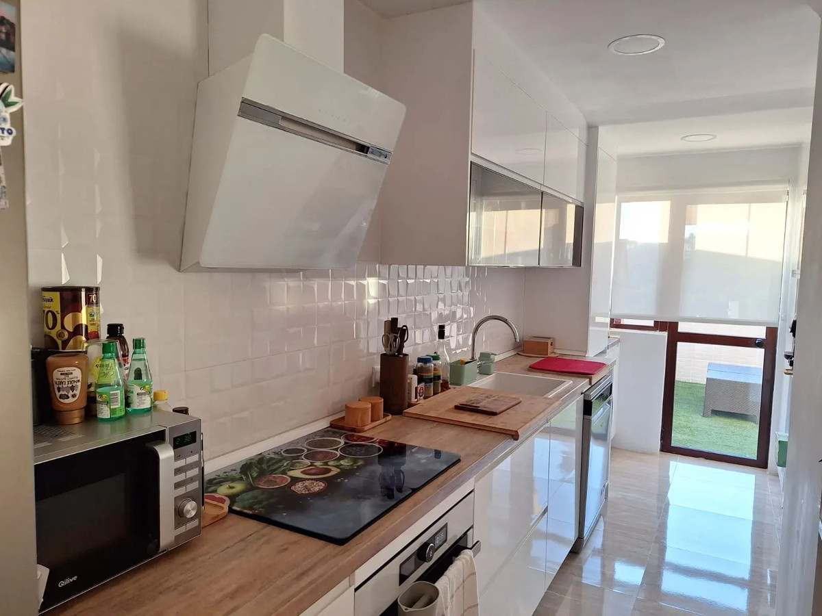The kitchen is fully equipped and opens up to the living-dining area, creating an open-plan space ideal for both daily living and entertaining. From the living room, there is access to a sunny terrace with open views.