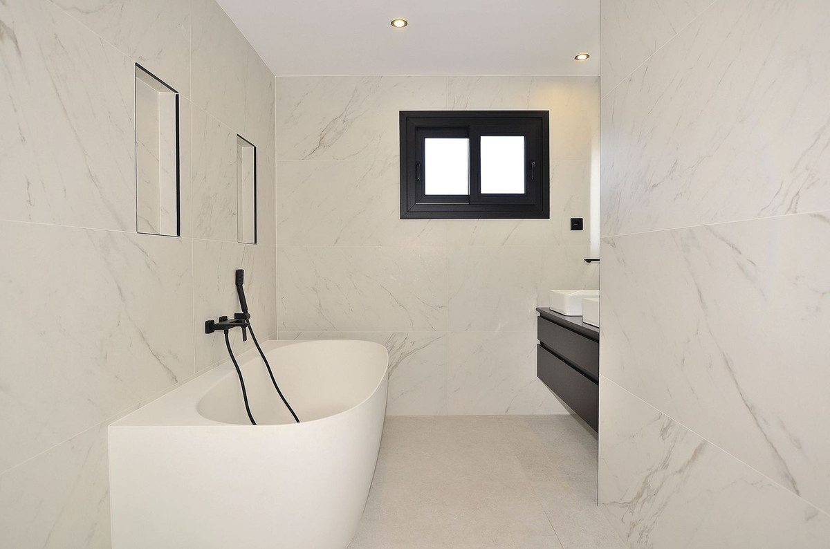 -Main floor: Entrance hall, bright living-dining room with direct access to the terrace, modern kitchen also with terrace access, 3 bedrooms, 2 bathrooms, laundry room and garage.