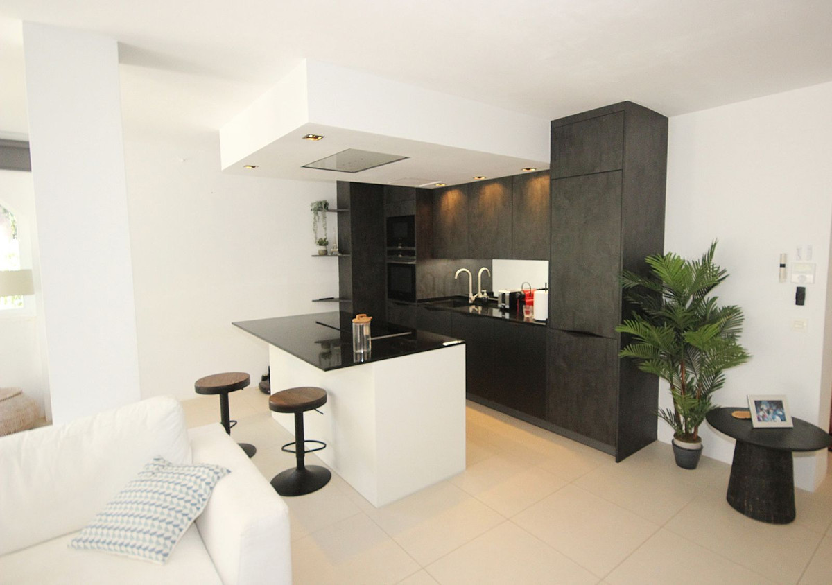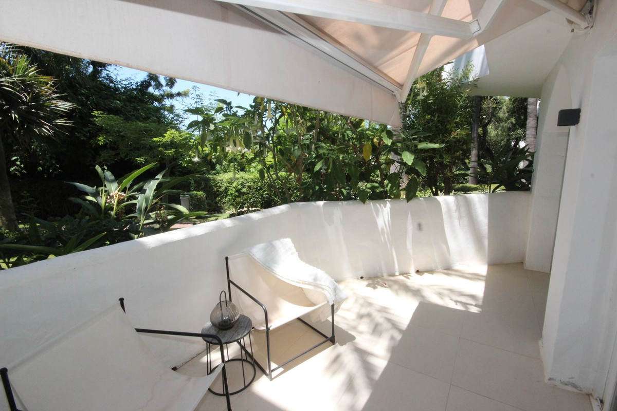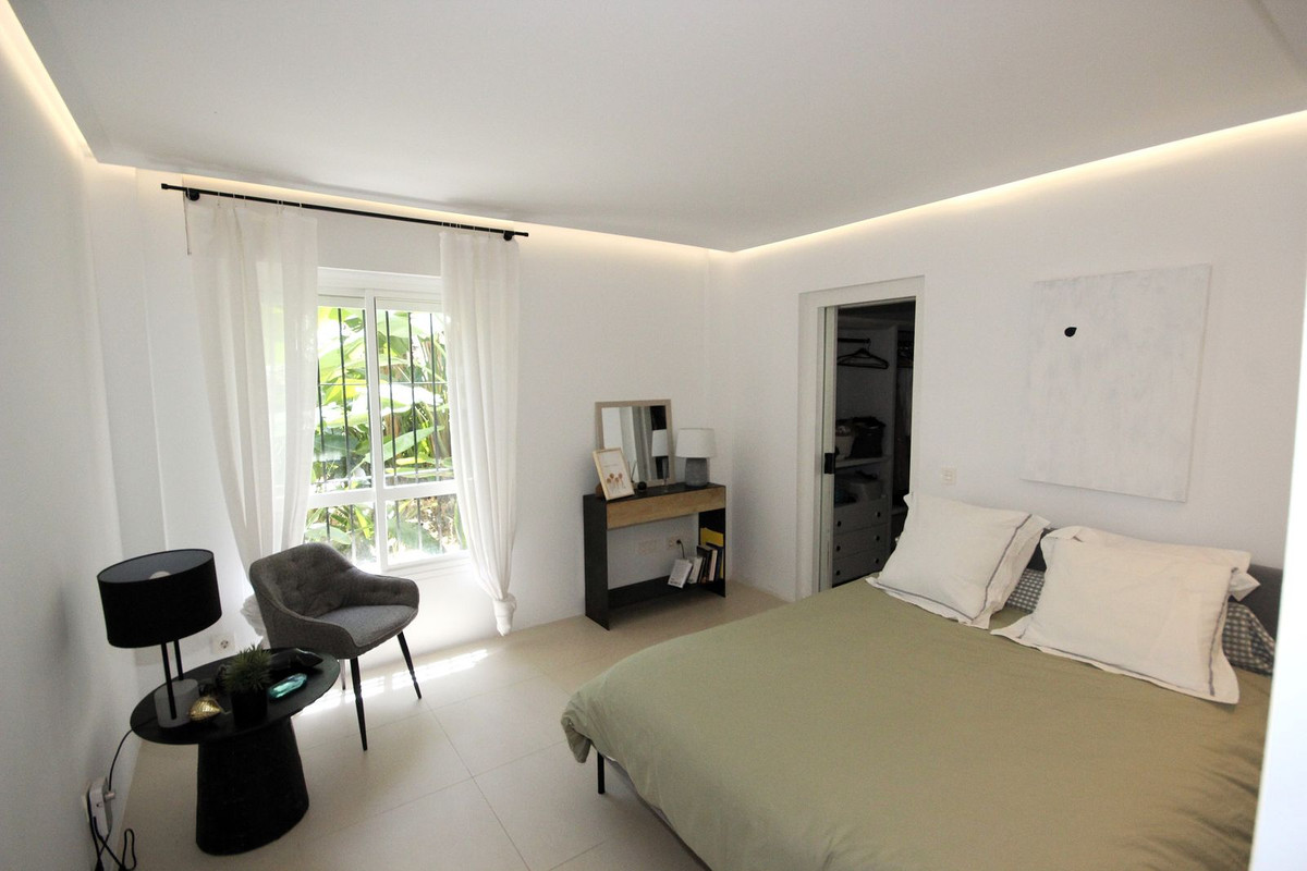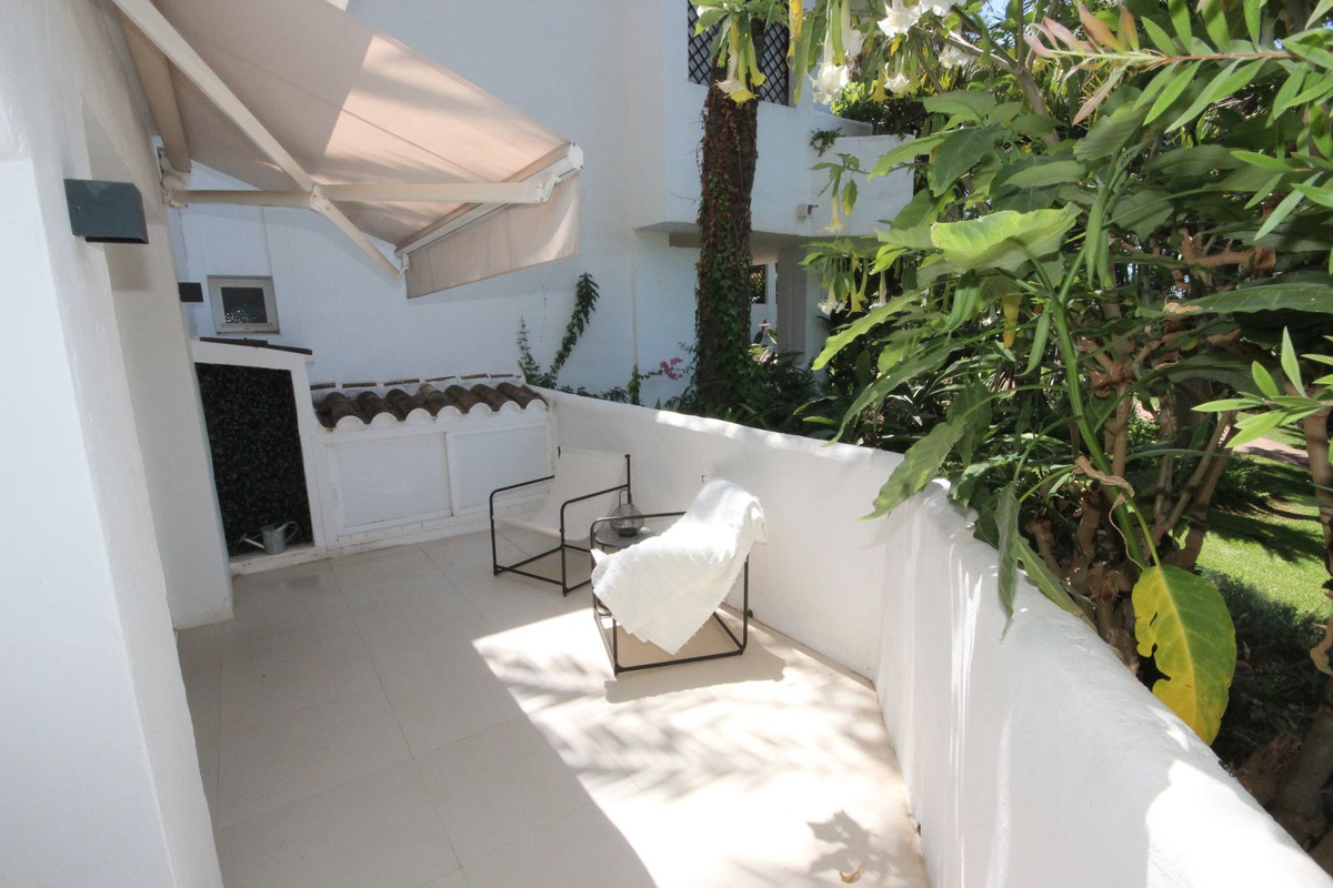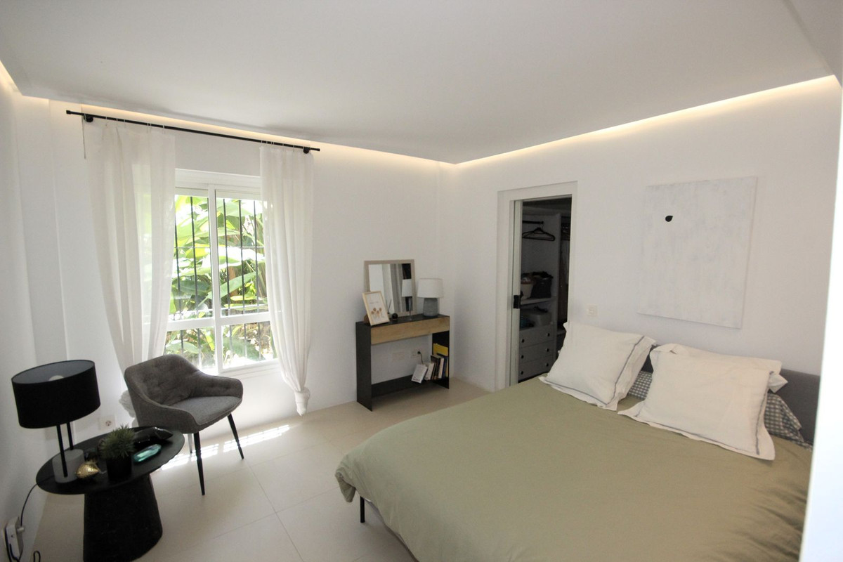 Discover this spacious ground floor apartment, a true gem in Marbella East, that perfectly combines romantic Andalusian-style architecture with a modern design and renovation.