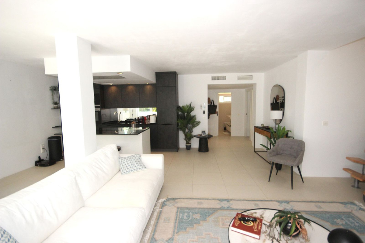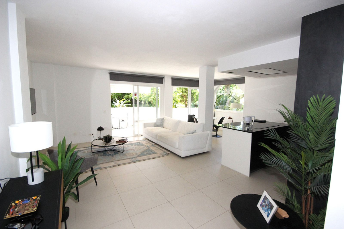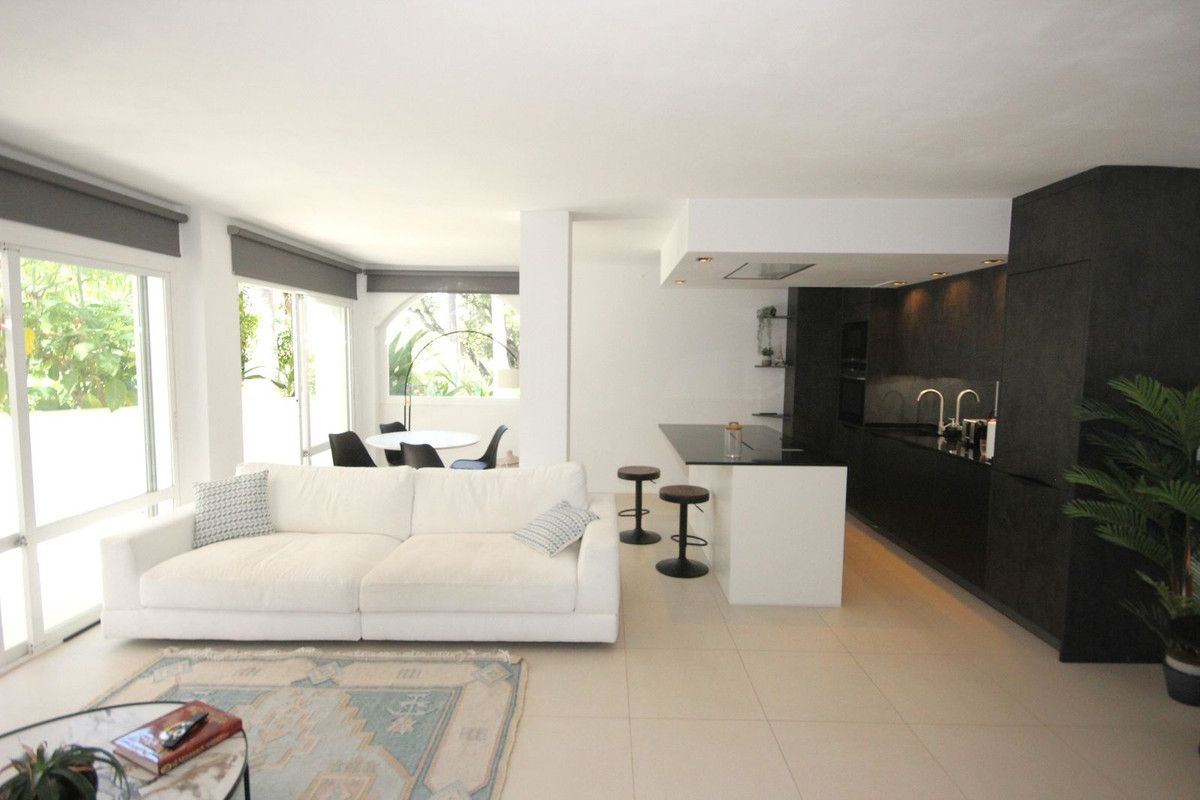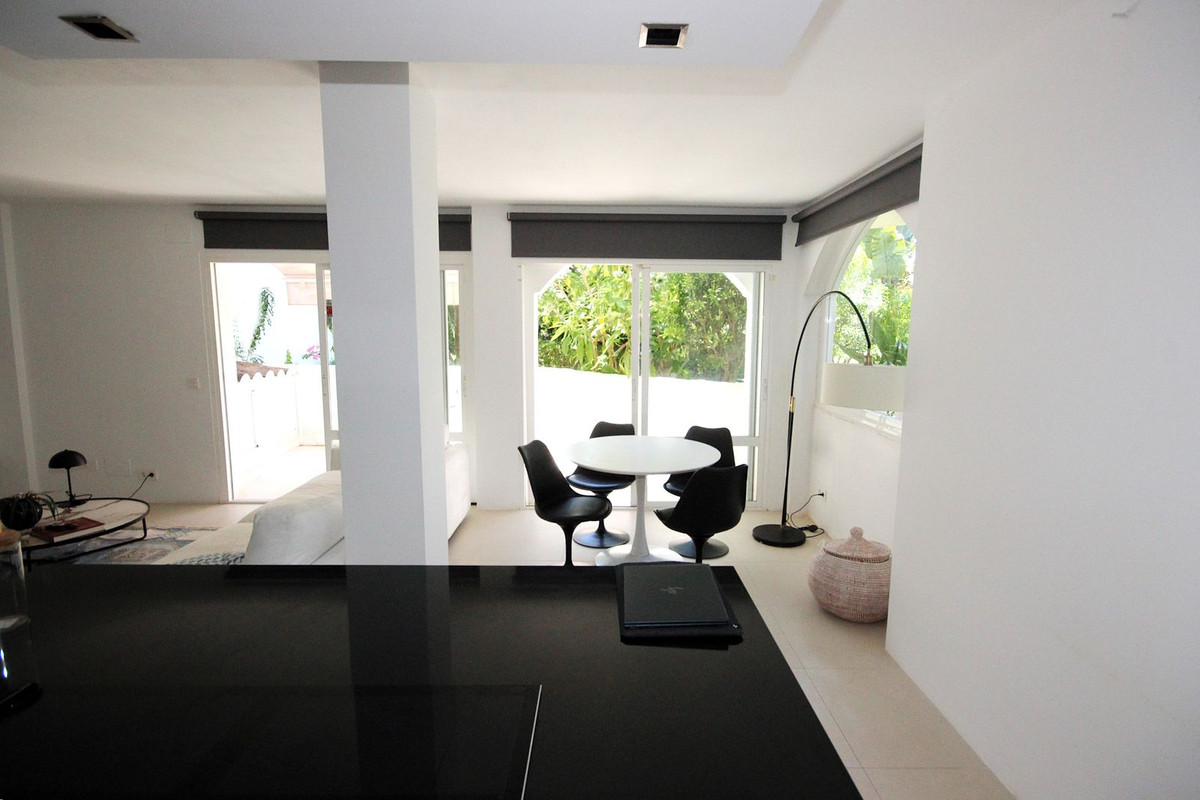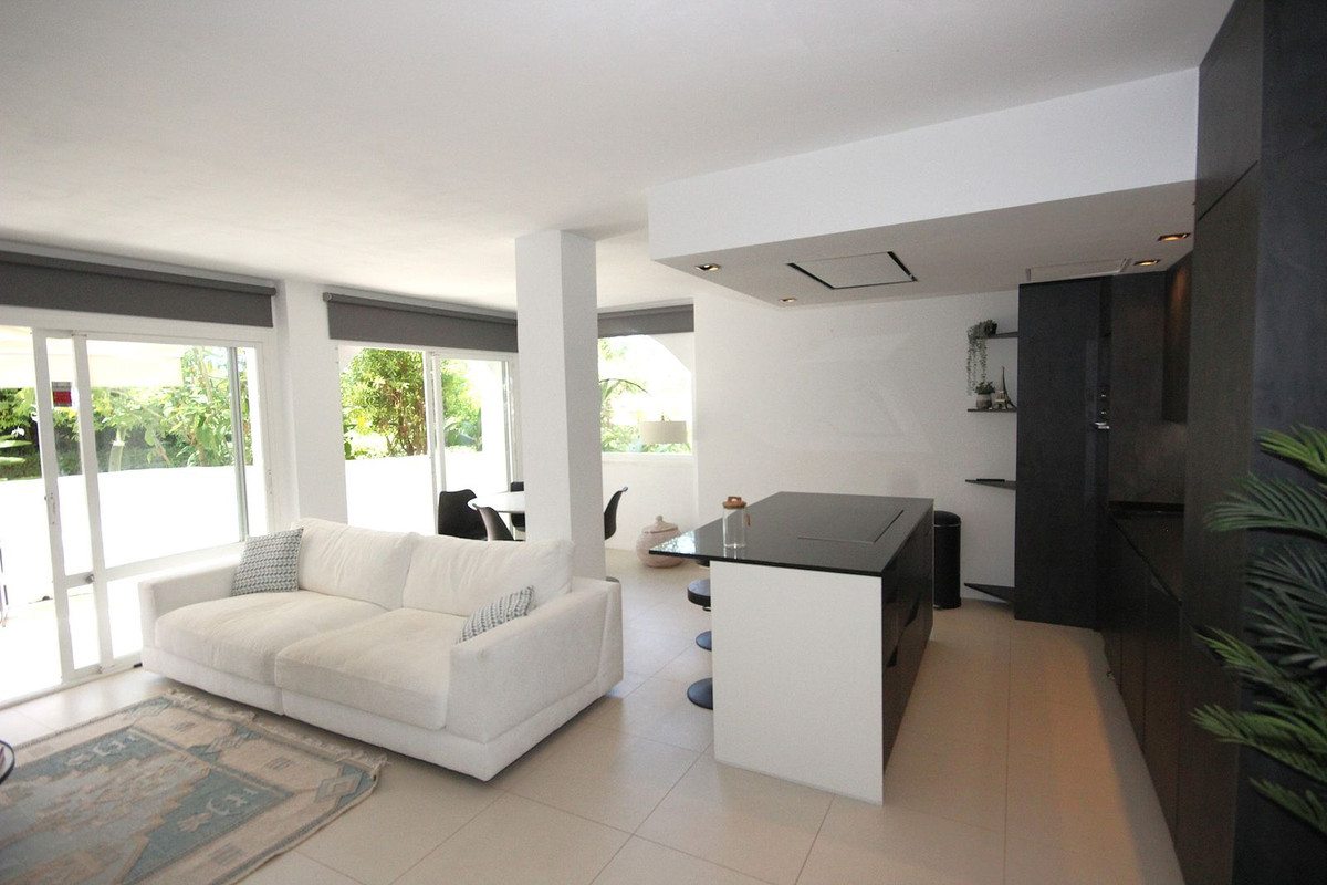Discover this spacious ground floor apartment, a true gem in Marbella East, that perfectly combines romantic Andalusian-style architecture with a modern design and renovation.