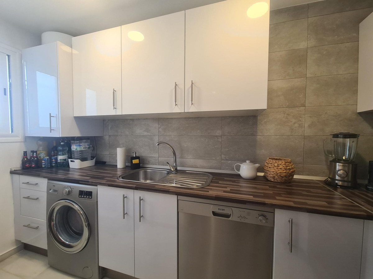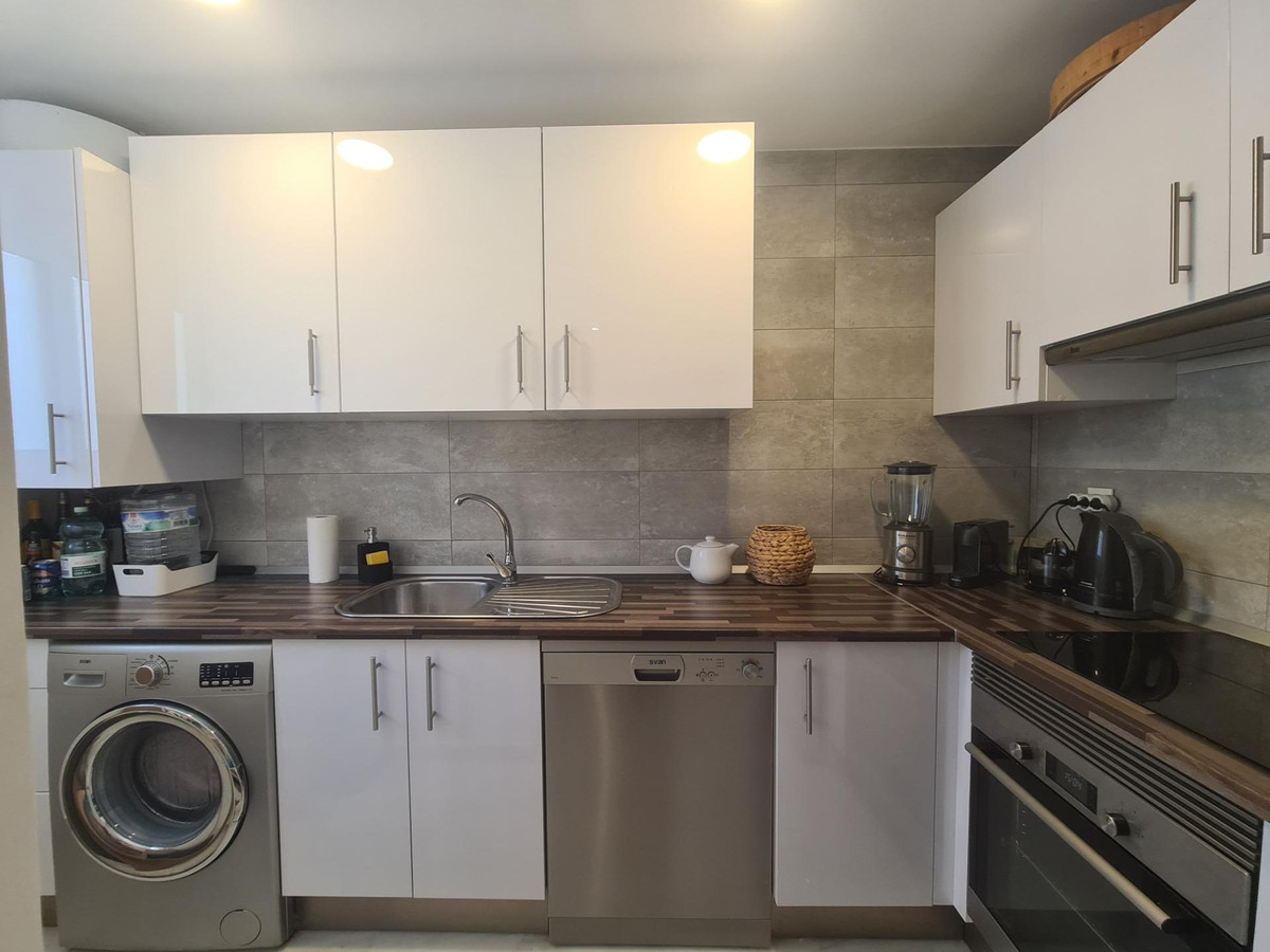 The property features two bright bedrooms with built-in wardrobes, a modern bathroom, a fully fitted open-plan kitchen, and a cosy living room that opens onto a lovely terrace. North-facing, the apartment remains pleasantly cool throughout the summer months.