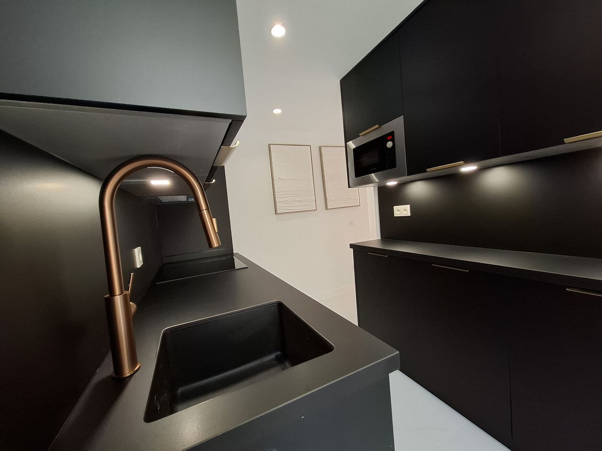 The property offers 80m² built plus 9m² of terrace, ideal for outdoor dining or relaxing in privacy above the city. The terrace is directly accessed from the bright living-dining area, which flows seamlessly into the open-plan designer kitchen.