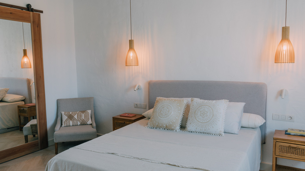 Outside you'll find a  swimming pool, and the well-equipped property includes its own well and hydraulic pump for self-sufficient water supply and solar panels for electricity supply. While pockets of greenery are present, the vistas remain open and unrestricted, providing serenity and privacy.