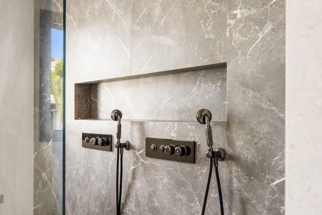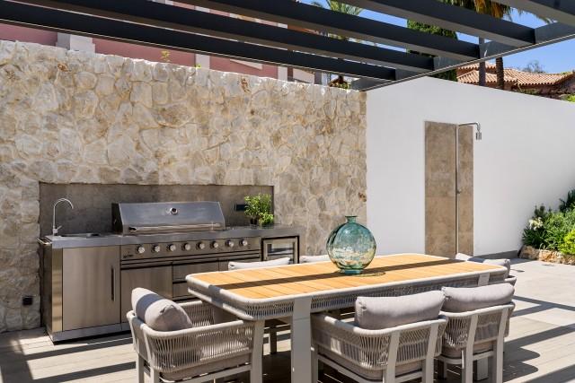 À l'extérieur, de magnifiques jardins paysagers entourent une piscine d'eau salée chauffée, avec de vastes terrasses conçues pour les repas en plein air et la détente au soleil. La propriété comprend également un garage pour trois voitures ainsi qu'une allée de stationnement supplémentaire, le tout dans la sécurité et la sérénité de l'une des résidences les plus prisées de la Costa del Sol.