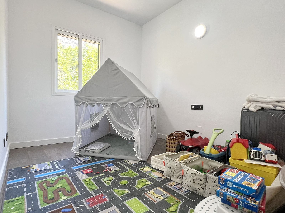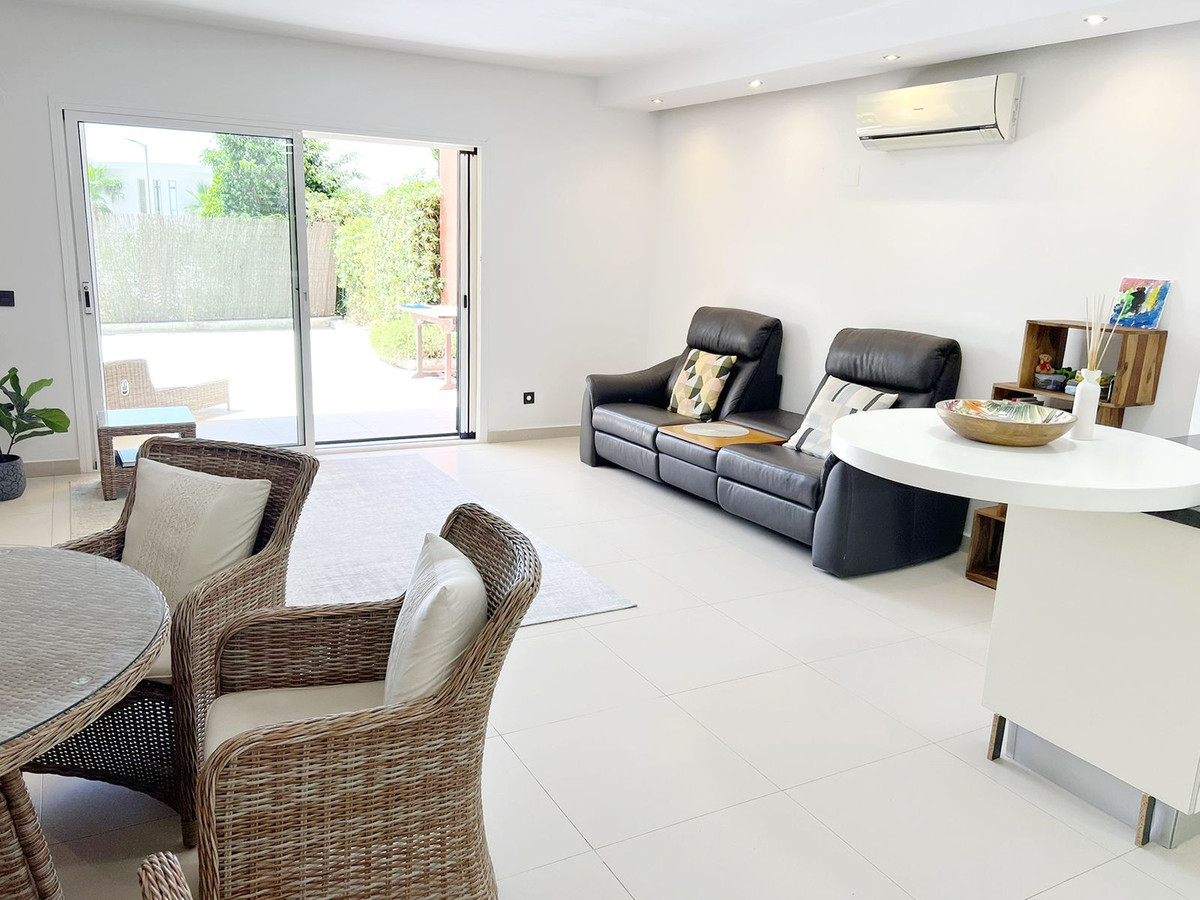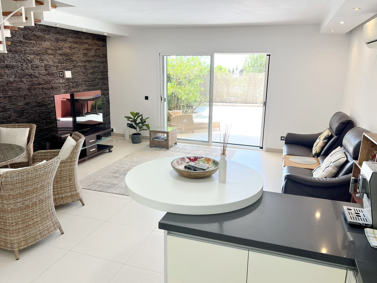 There is an entrance porch. The property has a spacious living/dining room. There are sliding doors that lead onto a wonderful covered terrace and open patio -- a private space for sun-bathing, to chill-out or dine "al fresco". Marquee. Open-plan fully fitted kitchen. Guest Wc. Halogen lights. Windows are all double-glazed, with mosquito nets and window shutters.